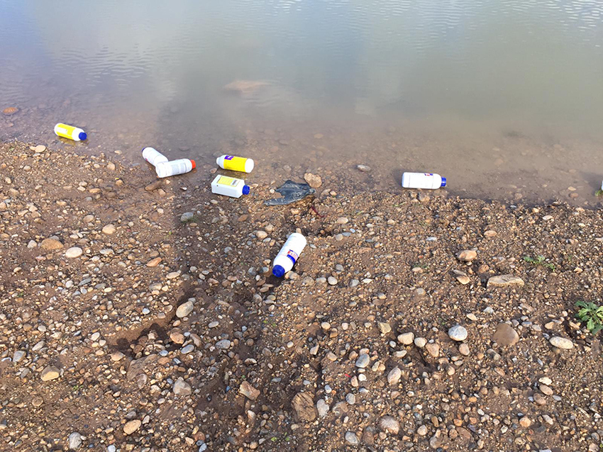 Doğaya rastgele atılan bu ilaç kapları sadece doğayı kirletmekle kalmıyor, balık ve kurbağa gibi canlıların ölümüne de neden oluyor.