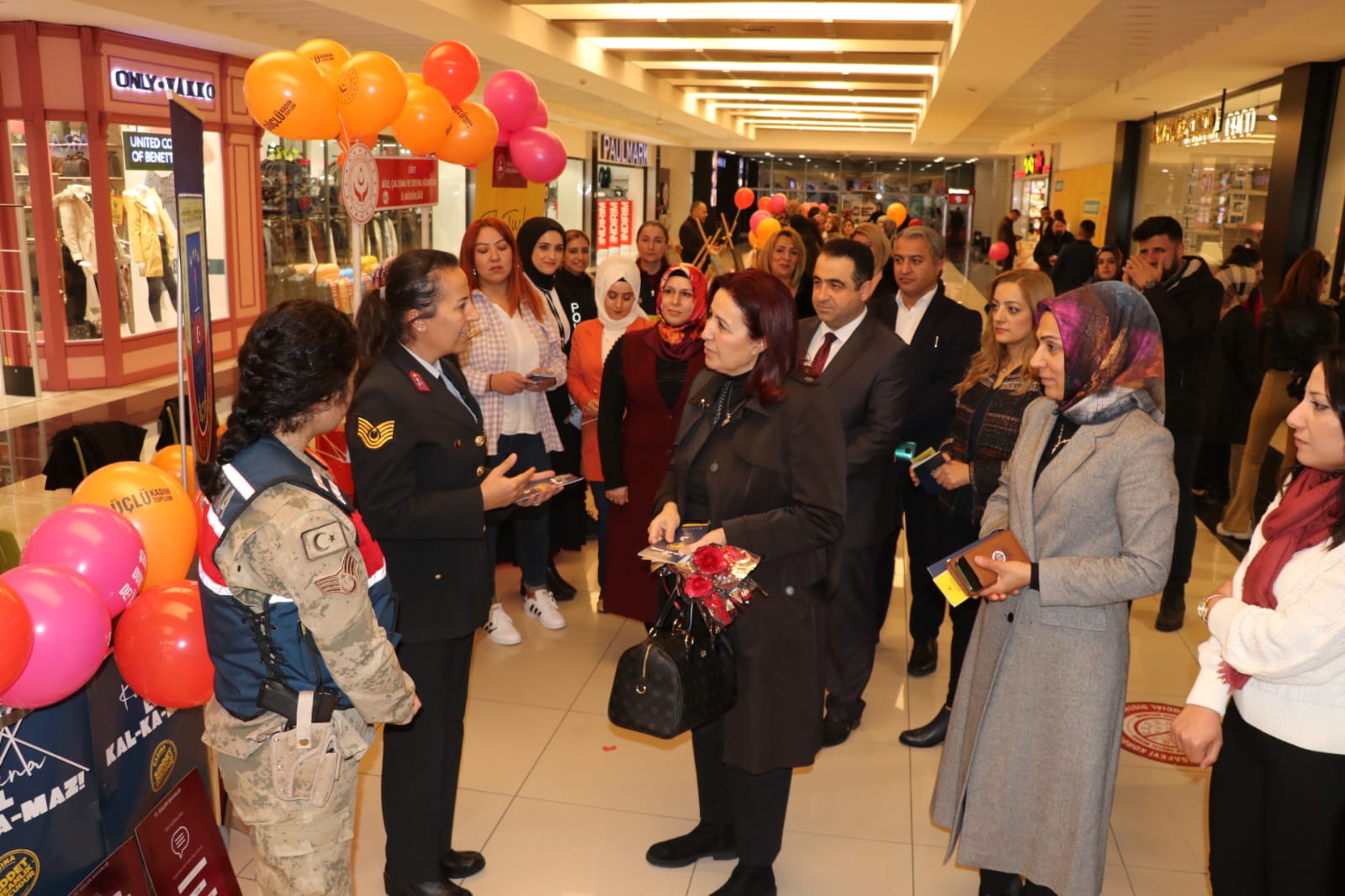 Siirt Valiliği himayelerinde Siirt Aile ve Sosyal Hizmetler İl Müdürlüğü, İl Emniyet Müdürlüğü ve İl Jandarma Komutanlığı işbirliğinde Siirt Park AVM de kadına yönelik şiddetle mücadeleye dikkat çekmek ve farkındalık oluşturmak amacıyla İl Jandarma Komutanlığı ve İl Emniyet Müdürlüğü görevlileri stant açarak, KADES uygulaması hakkında vatandaşlar bilgilendirildi, “Kadına El Kalkamaz” broşürleri dağıtıldı. Aile Destek Merkezindeki kadınlar tarafından da hazırlanan el emeği göz nuru ürünler sergilendi.Etkinliğe katılan Siirt Valisi ve Belediye Başkan Vekili Osman Hacıbektaşoğlu’nun eşi Güney Hacıbektaşoğlu, kadınlara karanfil dağıtarak, sergiyi gezdi, emeği geçenlere teşekkür etti.KADES uygulamasının önemine değinen Vali Eşi Güney Hacıbektaşoğlu, “Bizler kadına hürmet eden, tarih boyunca kadını ön planda tutan bir milletin, cenneti anaların ayaklarının altında olduğuna inanan bir inancın mensuplarıyız. Kadına yönelik şiddet ne inancımızla ne de medeniyet anlayışımızla asla yeri yoktur. Tüm kadınlarımızın mutlu, sağlıklı ve sevgi dolu bir dünyada hiçbir şiddete maruz kalmadan yaşamalarını diliyorum.”dedi.Programa, Siirt Aile Sosyal Hizmetler İl Müdürü Gökhan Marakçı, Aile Destek Merkezi Koordinatörü Nurten Temiz, görevli öğretmenler, Jandarma ve emniyet görevlileri ile Aile Destek Merkezlerindeki kursiyer kadınlar katıldı.