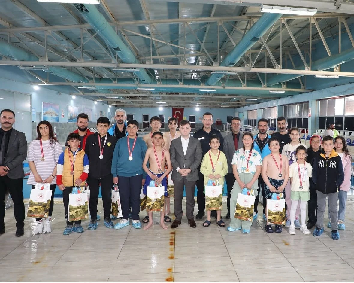 <div>Başkale Gençlik ve Spor Müdürlüğü tarafından ilçedeki kapalı yüzme havuzunda yapılan yarışmaya ilkokul, ortaokul ve lise öğrencileri katıldı.</div> <div>Başkale Kaymakamı Muhammet Serdar Erdoğan, çekişmeli geçen yarışmanın finalini tribünden izleyerek öğrencilere destek verdi.</div> <div>Öğrencileri kutlayan Erdoğan, dereceye girenlere ödüllerini verdi.</div> <div></div> <div>(AA)</div>