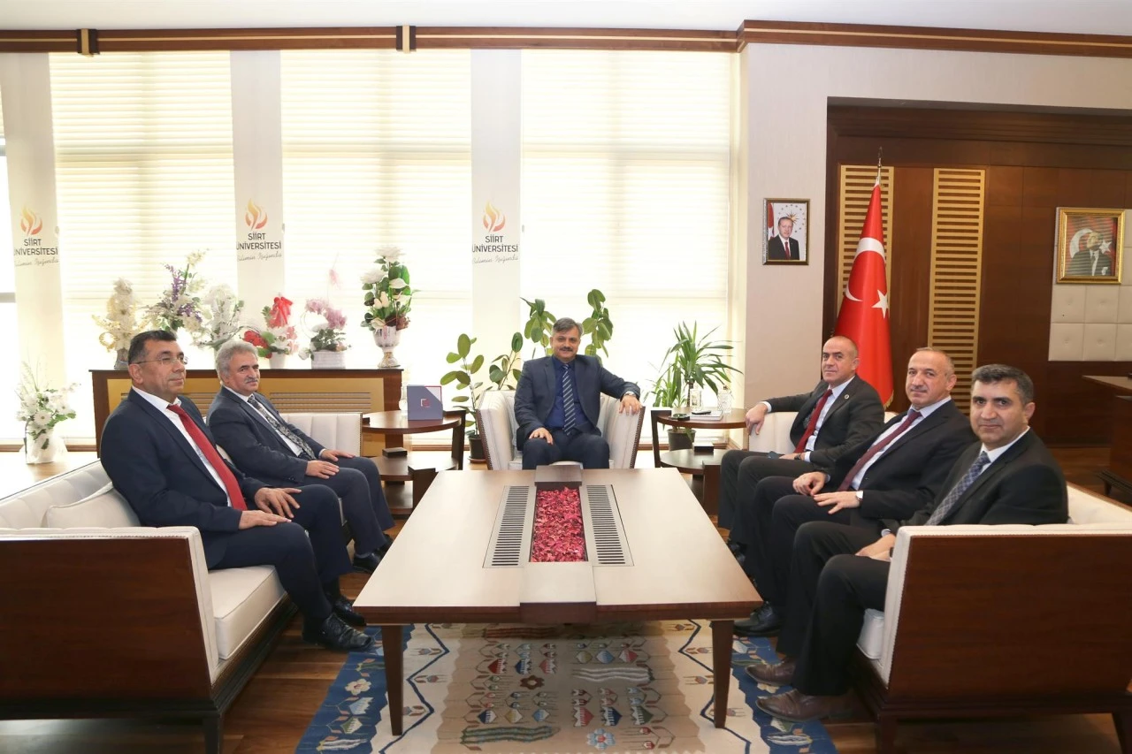 <div></div> <div>Rektörlük makamında gerçekleştirilen görüşmede, Siirt Üniversitesi ile yerel yönetimler arasındaki iş birliklerinin güçlendirilmesine yönelik değerlendirmeler yapıldı. İki kurum arasında gelecekte hayata geçirilebilecek ortak projeler ve faaliyetler hakkında fikir alışverişinde bulunuldu.</div> <div>Rektör Prof. Dr. Nihat Şındak, ziyaretten duyduğu memnuniyeti dile getirerek belediye ile üniversite arasındaki iş birliklerinin kent adına önemli katkılar sunduğunu belirtti. Gökçebağ Belediye Başkanı Ferzent Çiçek ise misafirperverliği için Rektör Şındak’a teşekkür etti.</div>