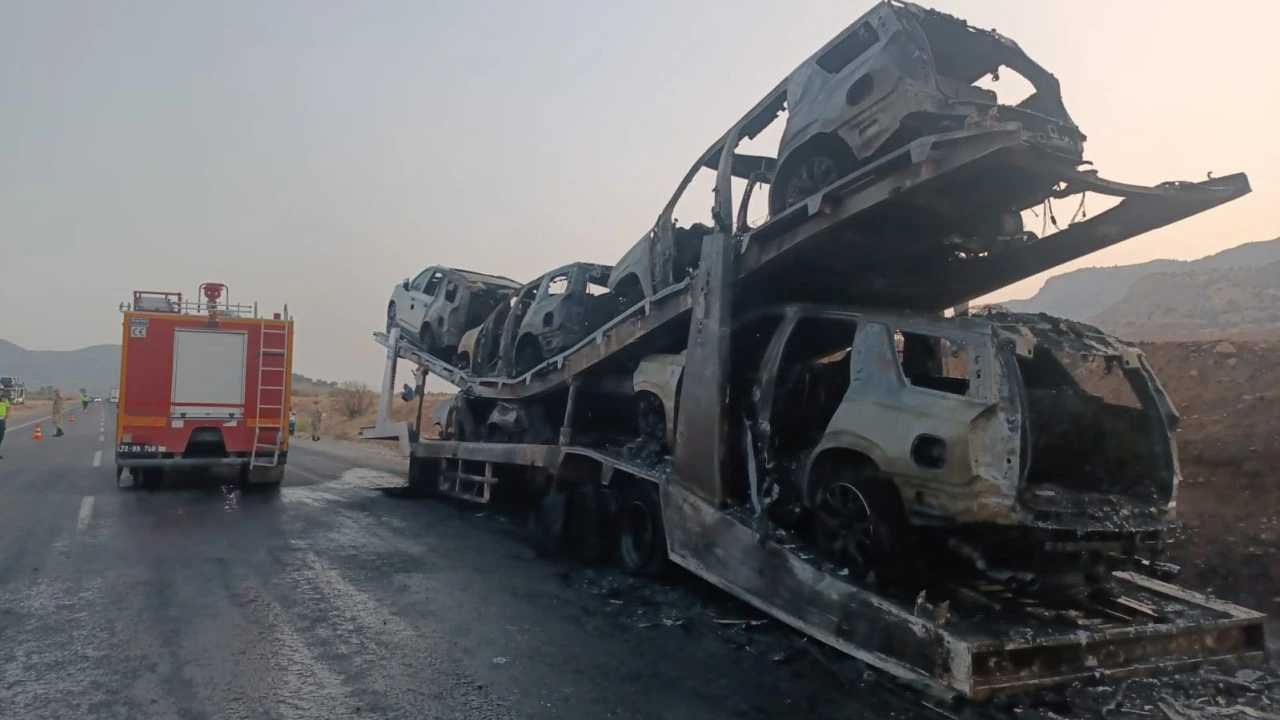 <div>Kavaklı köyü mevkisinde sürücüsünün kimliği henüz öğrenilemeyen yabancı plakalı çoklu araç taşıma hizmeti veren tırda henüz bilinmeyen nedenle yangın çıktı.</div> <div>İhbar üzerine bölgeye itfaiye ve jandarma ekipleri sevk edildi.</div> <div>Ekiplerin müdahalesi sonucu söndürülen yangında 5 araç kullanılamaz hale geldi.</div> <div>,(AA)</div>