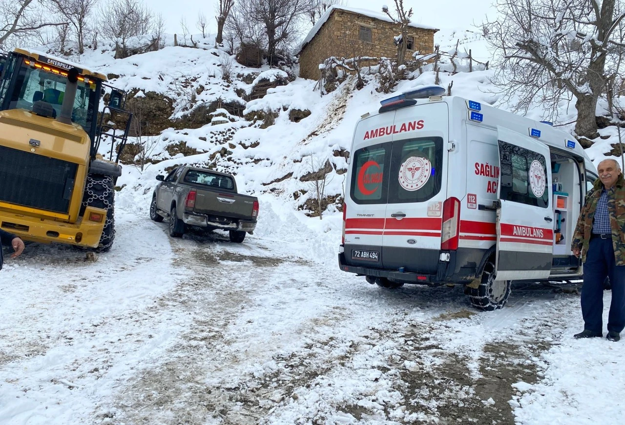 <div>İlçenin Kaleyolu köyünde yaşayan Sadettin Işık'ın (51) tansiyonunun yükselmesi nedeniyle, yakınları 112 Acil Çağrı Merkezi'nden yardım istedi.</div> <div>Köye 112 Acil Sağlık ve İlçe Özel İdaresi ekipleri sevk edildi.</div> <div>İş makinesiyle yolun açılması sonrası köye ulaşan sağlık görevlileri hastayı ambulansla Sason Devlet Hastanesi'ne kaldırdı.</div>