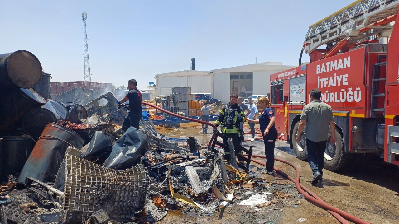 <div>Batman OSB'deki meyve suyu fabrikasının arka bahçesinde, tahta paletler ve bidonların da yer aldığı malzemelerin bulunduğu kısımda henüz bilinmeyen nedenle yangın çıktı.</div> <div>İhbar üzerine olay yerine itfaiye, 112 Acil Sağlık, AFAD, jandarma ve polis ekipleri sevk edildi.</div> <div>Yangına, itfaiye ekiplerinin yanı sıra Toplumsal Olaylara Müdahale Araçlarıyla (TOMA) müdahale edildi.</div> <div>Ekiplerin çalışmasıyla söndürülen yangının çıkış nedeni araştırılıyor.</div> <div></div> <div>(AA)</div>