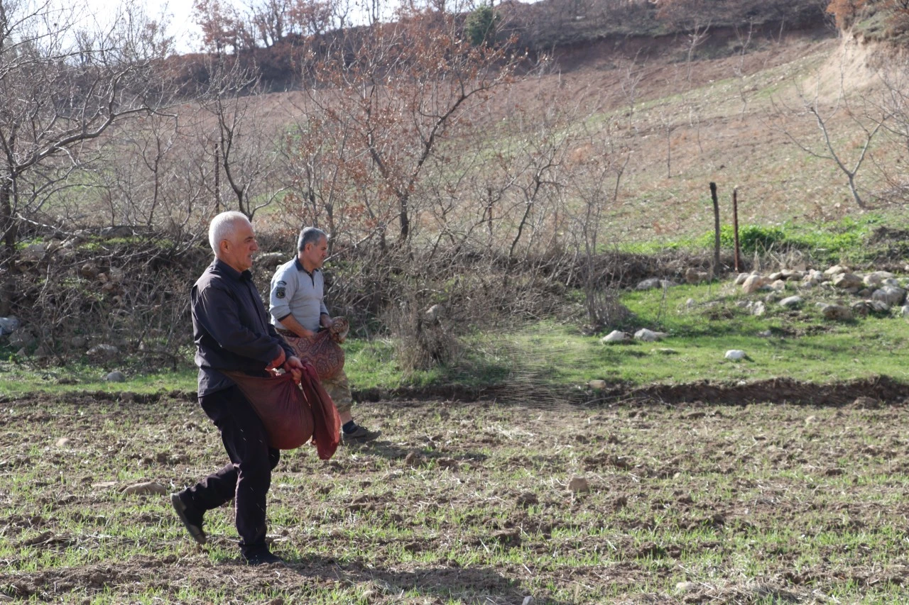 <div>İlde kasım ayında buğday ve arpa ekimi gerçekleştiren üreticilerin, havaların ısınmasıyla ekili alanlarda başladığı gübreleme çalışmaları sürüyor.</div> <div>Hasankeyf'e bağlı Akalın köyündeki üreticiler de makinelerin ulaşmadığı eğimli arazilerinde imece usulü gübreleme işlemine başladı.</div> <div>Sabahın erken saatlerinde tarlaya giden çiftçiler, bellerine bağladıkları bez torbalara koydukları gübreyi elle buğday ve arpa tarlalarına serpiyor.</div> <div>Üreticilerden Cüneyt Başak, AA muhabirine, yaklaşık 70 dönüm arazide buğday ve arpa ürettiğini söyledi.</div> <div>Arazilerinin bir kısmını traktörle gübrelediğini, bir bölümünün ise engebeli olması nedeniyle gübreyi elle attığını ifade eden Başak, "Burası dağlık olduğu için makine girmiyor. Bu yüzden tohumu ve gübreyi imece usulüyle elle atıyoruz. Şu anda bahar mevsimi yani bahar gübresini atıyoruz. Allah'ın izniyle hasat haziran ayında başlıyor. Bu sene çok kar ve yağmur yağdı, bereketli olur inşallah." diye konuştu.</div> <div>Yusuf Başak ise çiftçiliğin meşakkatli bir iş olduğunu dile getirdi.</div> <div>Gübreleme yapmadıkları takdirde verimin düşeceğini söyleyen Başak, engebeli arazilerin gübresini elle attıklarını kaydetti.</div>