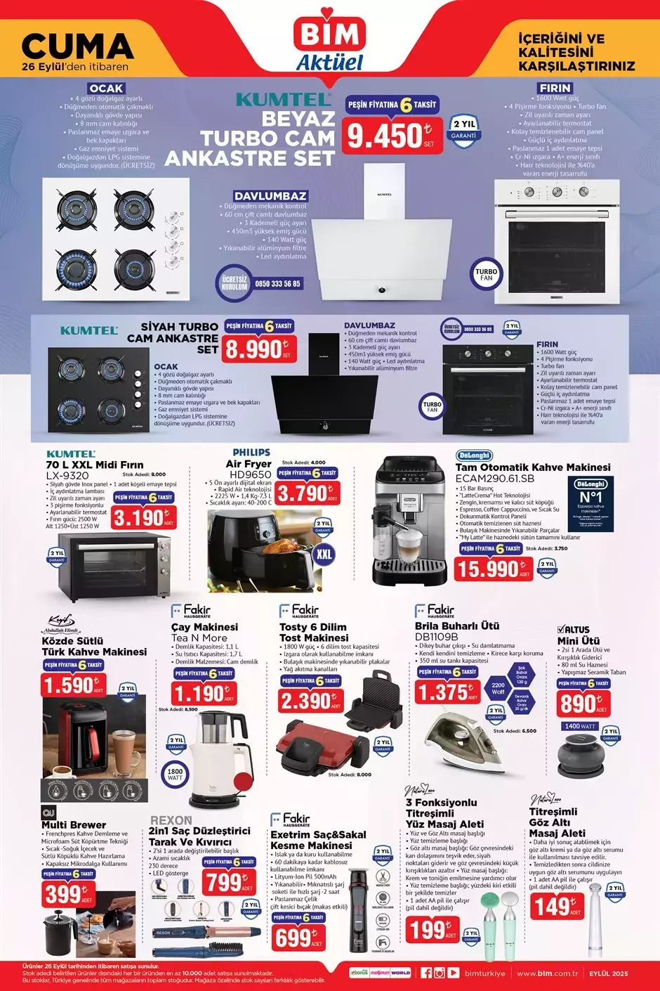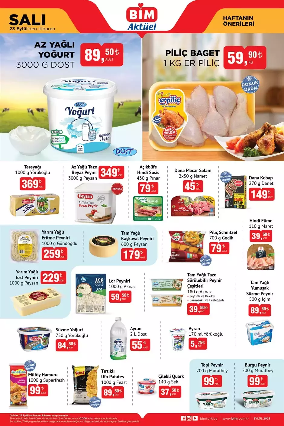 <div data-end="823" data-start="423">Her hafta olduğu gibi BİM’in aktüel ürün kampanyası bu hafta da tüketicilerin ilgisini çekecek fırsatlarla dolu. Salı günü, temel gıda ihtiyaçlarını uygun fiyatlarla karşılamak isteyenler için pirinç, makarna, bakliyat ve süt ürünleri gibi ürünler indirimli olarak satışa sunulacak. Cuma günü ise özellikle ev eşyası, küçük ev aletleri ve elektronik ürünlerde cazip fırsatlar tüketicileri bekliyor.</div> <div data-end="1116" data-start="825">BİM’in güncel aktüel ürünler listesinde öne çıkan ürünler arasında airfryer, kahve makinesi, ankastre set, çeyiz setleri ve mutfak gereçleri dikkat çekiyor. Ürünler sınırlı stoklarla satışa sunulacağından, kampanyadan faydalanmak isteyenlerin mağazaları erkenden ziyaret etmesi öneriliyor.</div> <div data-end="1254" data-start="1118">BİM 23-26 Eylül 2025 aktüel ürünler kataloğu ile hem gıda hem de ev eşyalarında avantajlı alışveriş fırsatları müşterilerle buluşuyor.</div> <div data-end="1254" data-start="1118"></div> <div data-end="1254" data-start="1118"></div> <div data-end="1254" data-start="1118"></div> <div data-end="1254" data-start="1118"></div> <div data-end="1254" data-start="1118"></div> <div data-end="1254" data-start="1118"></div> <div data-end="1254" data-start="1118"></div> <div data-end="1254" data-start="1118"></div> <div data-end="1254" data-start="1118"></div>