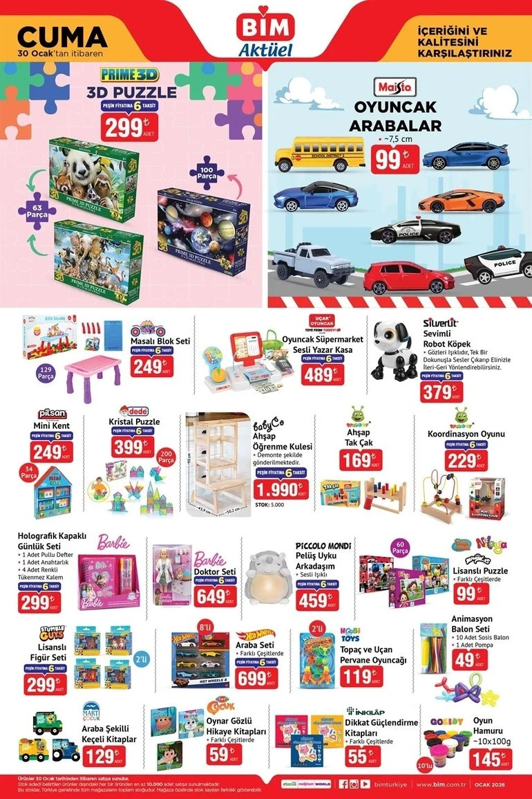 <div data-end="783" data-start="480">Her hafta Cuma günlerine özel olarak hazırladığı indirimlerle dikkat çeken BİM, 30 Ocak tarihli aktüel ürünler kataloğunda da geniş ürün yelpazesiyle öne çıkıyor. Uygun fiyat politikasıyla milyonlarca tüketicinin tercih ettiği market zinciri, bu hafta da bütçe dostu alışveriş imkânı sunmayı hedefliyor.</div> <h3>BİM Aktüel Kataloğunda Hangi Ürünler Yer Alıyor?</h3> <div data-end="911" data-start="839">30 Ocak 2026 Cuma günü itibarıyla geçerli olacak BİM aktüel kataloğunda;</div> <div data-end="940" data-start="915">Temel <strong data-end="938" data-start="921">gıda ürünleri</strong></div> <div data-end="983" data-start="943"><strong data-end="972" data-start="943">Temizlik ve kişisel bakım</strong> ürünleri</div> <div data-end="1026" data-start="986"><strong data-end="1006" data-start="986">Mutfak gereçleri</strong> ve ev ihtiyaçları</div> <div data-end="1051" data-start="1029"><strong data-end="1049" data-start="1029">Tekstil ürünleri</strong></div> <div data-end="1105" data-start="1054">Sınırlı sayıda <strong data-end="1105" data-start="1069">elektronik ve teknolojik ürünler</strong></div> <div data-end="1225" data-start="1107">yer alıyor. Haftanın fırsatları kapsamında sunulan ürünler, stoklarla sınırlı olarak BİM mağazalarında satışa çıkacak.</div> <div data-end="1225" data-start="1107"></div> <div data-end="1225" data-start="1107"></div> <div data-end="1225" data-start="1107"></div> <div data-end="1225" data-start="1107"></div> <div data-end="1225" data-start="1107"></div> <div data-end="1225" data-start="1107"></div>