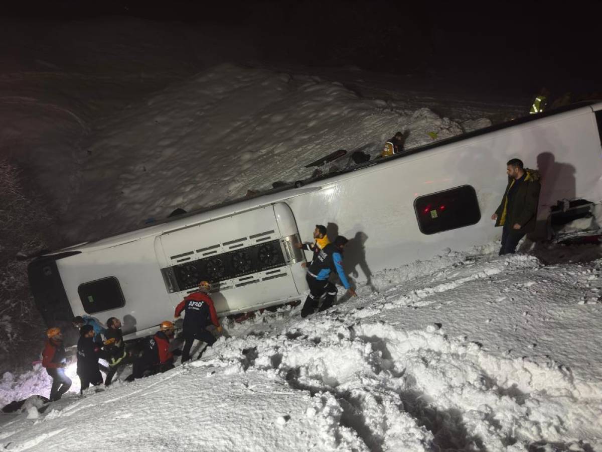 <div>BİNGÖL (AA) - Bingöl'de yolcu otobüsünün şarampole devrilmesi sonucu ölenlerin sayısının 5'e çıktığı, yaralı sayısının ise 38 olduğu bildirildi.</div><div>Bingöl Valisi Ahmet Hamdi Usta, sosyal medya hesabından yaptığı paylaşımda, yolcu otobüsünün ilk belirlemelere göre sis, buzlanma ve dikkatsizlik sonucu kontrolden çıkarak şarampole devrildiğini ifade etti.</div><div>Usta, kazada ölenlerin sayısının 5, yaralı sayısının ise 38 olduğunu bildirdi.</div><div>Yaralıların 30'unun Bingöl'de 8'inin ise Genç ilçesi, Diyarbakır ve Lice ilçesi ile Malatya'daki hastanelerde tedavi gördüğünü kaydeden Usta, devam eden kurtarma çalışmalarını yerinde izlediğini, yaralıları hastanelerde ziyaret ettiğini belirtti.</div><div>Usta, "Bu mübarek Berat Kandili akşamında hayatını kaybeden vatandaşlarımıza Allah'tan rahmet, yaralılarımıza acil şifalar, kederli ailelerine sabır ve başsağlığı diliyorum." ifadelerini kullandı.</div><div>- Yaralılar kaza anını anlattı</div><div>Bingöl Devlet Hastanesinde tedavi gören yaralılardan Bayburt Üniversitesi öğrencisi Turan Aktimur (20), otobüse Mardin'den bindiğini söyledi.</div><div>Aktimur, "Normal bir hızda gidiyorduk. Diyarbakır'dan sonra hızlanmaya başladı otobüs. Yollar karlıydı, otobüs kaymaya başladı. Otobüste şoförün olduğu bölümde cam kırılmış, bir delik açılmıştı, oradan çıktık. En son hatırladıklarım bu." dedi</div><div>Karadeniz Teknik Üniversitesi öğrencisi Fehmi İpek (19) ise Mardin'den Trabzon'a gitmek için otobüse bindiğini anlatarak, şunları söyledi:</div><div>"Bingöl'e yaklaşırken otobüs virajda hızlı gidiyordu. Yalpaladı, sonra devrildi. En arkada oturuyordum. Sol taraftaydım. Kendi çabalarımla otobüsten çıktım."</div><div>Mardin Seyahat firmasına ait sürücüsünün kimliği henüz belirlenemeyen 33 CFU 60 plakalı yolcu otobüsü, dün saat 20.00 civarında, Bingöl-Diyarbakır kara yolunun Doğanca köyü mevkisinde kontrolden çıkarak şarampole devrilmişti.</div><div></div>