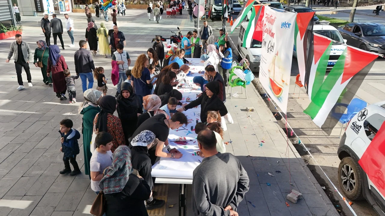 <div>İnsan Hak ve Hürriyetleri (İHH) İnsani Yardım Derneği, Türkiye Gençlik Vakfı ile Yetim Vakfı gönüllüleri tarafından Cumhuriyet Caddesi'nde etkinlik düzenlendi.</div> <div>Etkinliğe katılan çocuklar, 200 metre uzunluğundaki kağıda resim çizdi.</div> <div>Yetim Vakfı Bitlis Sorumlusu Zulal Bakırhan, basın mensuplarına, etkinliğe 500 çocuğun katıldığını söyledi.</div> <div>Filistinli çocukları unutmadıklarını belirten Bakırhan, "Bu etkinlik 81 ilde eş zamanlı olarak düzenlendi. Burada gönüllülerin katılımıyla 200 metrelik kağıda gün boyunca çocuklar resim çizdi. Filistinli çocukların yanında olduğumuzu belirtmek, sesimizi duyurmak ve farkındalık oluşturmak için burada buluştuk." dedi.</div> <div>Yetim Vakfı gönüllüsü Cihad Veysel Aki ise "Bitlis'ten ses yükseltebilmek için etkinlik düzenledik. Filistinli çocukların sesi olmak ve dünyaya bu soykırımı duyurabilmek için hep beraberiz." diye konuştu.</div>