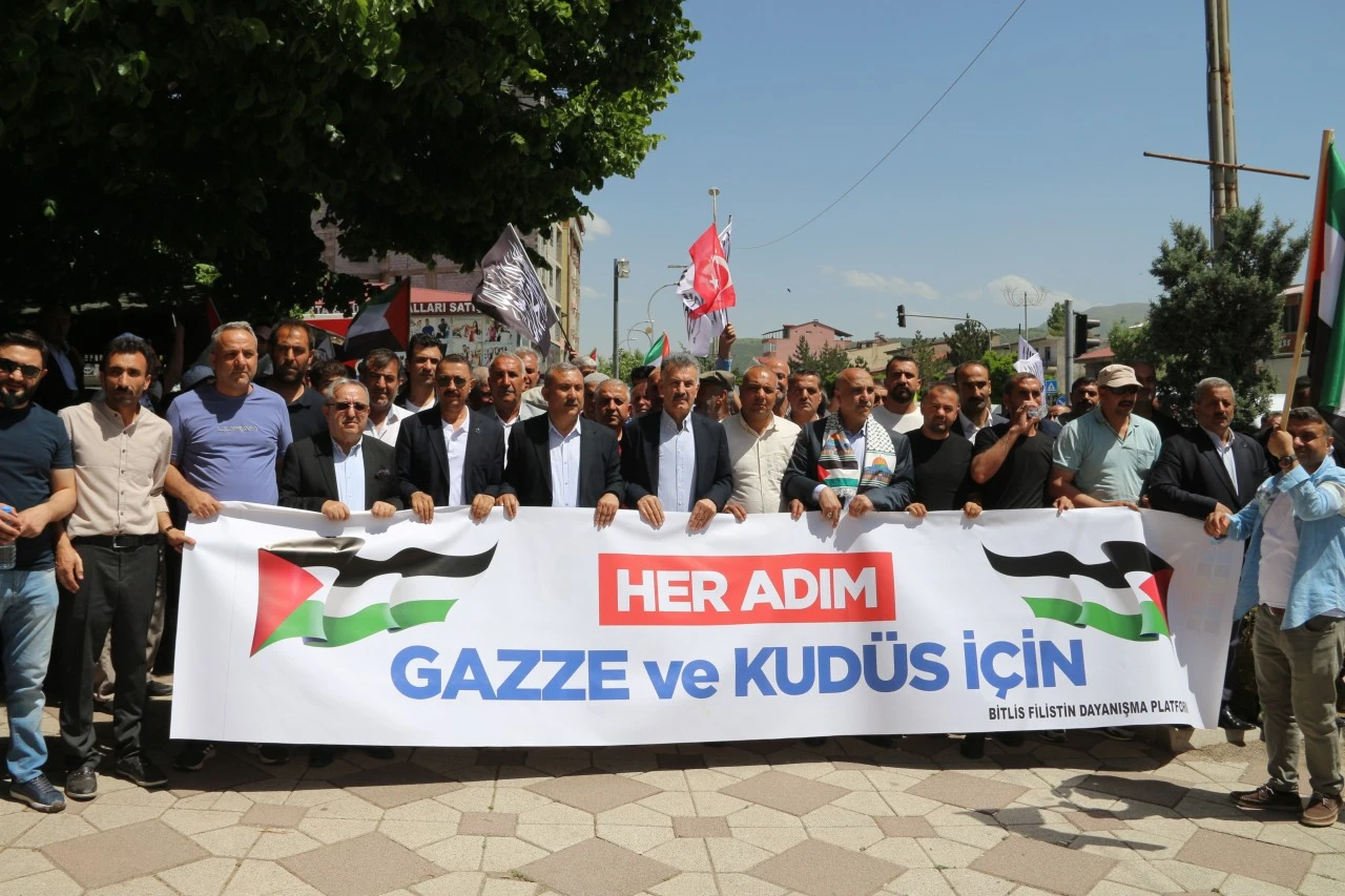 <div>Yürüyüş kapsamında ilçe çıkışında toplanan vatandaşlar, Mehmetçik Parkı Meydanı'na kadar yürüyerek İsrail'in saldırılarını protesto etti.</div> <div>Burada grup adına açıklama yapan Bitlis TOKİ Cami İmamı Cihat Bakırhan, dünyanın, tarih boyunca tanıklık edilen en büyük insanlık dramlardan, en acımasız zulümlerden birine sessiz kaldığını söyledi.</div> <div>İsrail'in tüm dünyanın gözleri önünde, uluslararası hukuku ve insan haklarını açıkça çiğneyerek Gazze'de bir soykırım suçu işlediğini belirten Bakırhan, şunları kaydetti:</div> <div>"7 Ekim 2023’ten bu yana yürütülen sistematik saldırılar sonucunda, büyük çoğunluğu kadın ve çocuk olmak üzere yaklaşık 60 bin Filistinli şehit olmuş, 125 bin kişi yaralanmış ve binlerce kişi hala enkaz altında kayıp durumdadır. Her geçen gün, her geçen saat şehit sayısı artmaktadır. İşgalci İsrail'in saldırıları nedeniyle Gazze'de 1 milyon 900 bin sivil, en az bir kez göçe zorlanmış, insanlar sığındıkları çadırlarda ve diğer yerleşim yerlerinde bile bombardımanların hedefi haline gelmiştir. Sivillerin kaldığı bölgeler defalarca vurulmuş, çok sayıda insan yanarak şehit olmuştur."</div> <div>İsrail'in saldırıları sebebiyle şu an Gazze'de hiçbir yerin güvenli olmadığını ifade eden Bakırhan, "Camiler, hastaneler, okullar ve yerleşim alanları açık hedef haline getirilmiştir. Gazze'de görev yapan 220 gazeteci ve 1000'in üzerinde sağlık çalışanı soykırımcı İsrail'in saldırılarında hayatını kaybetmiştir. Sağlık hizmetlerinin durma noktasına geldiği Gazze'de yaralılar ve hastalar, sağlık hizmetlerinin yetersizliği sebebiyle tedavi görememekte, birçoğu hayatlarını kaybetmektedir. Bir diğer kritik ve insanlık dışı uygulama ise Gazze'ye yönelik insani yardım geçişlerinin İsrail tarafından sistematik biçimde engellenmesidir. İşgalci İsrail, bir yandan Gazze’yi tonlarca bomba ile hedef alırken, diğer yandan temel yaşam hakkı olan gıda, ilaç ve suya erişimi dahi engelleyerek Gazze halkını toplu bir açlığa mahkum etmektedir. Gazze'de bebekler açlıktan hayatını kaybetmekte, insanlar gıdaya ulaşamadığı için hayatta kalma mücadelesi vermektedir."</div> <div>Dua edilmesiyle sona eren yürüyüşe, Güroymak Belediye Başkanı Eşref Mutlu, Günkırı Belediye Başkanı İlhan Çetinsoy, Güroymak AK Parti İlçe Başkanı Nihat Yavuz, İHH İnsani Yardım Vakfı Bitlis Şube Başkanı Muzaffer Taşcan ve ilçe sakinleri katıldı.</div> <div></div> <div>(AA)</div>