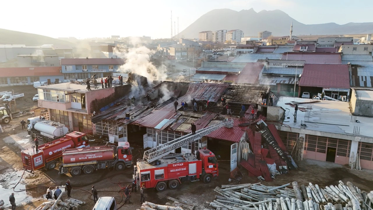 <div>Tatvan Küçük Sanayi Sitesi'nde bir kereste işletmesinde henüz belirlenemeyen bir nedenle yangın çıktı.</div> <div>Çevredekilerin 112 Acil Çağrı Merkezi'ni araması üzerine bölgeye Bitlis, Güroymak ve Hizan belediyelerinin itfaiye ekipleri sevk edildi.</div> <div>Polis ekiplerinin de TOMA ile destek verdiği çalışmalarda yangın kısa sürede söndürüldü.</div> <div>Olay yerinde incelemelerde bulunan Tatvan Esnaf ve Sanatkarlar Odası Başkanı Hişyar Sağnıç, yangının iş yerinde hasara neden olduğunu söyledi.</div> <div>Ekiplerin yangını söndürmek için seferber olduğunu belirten Sağnıç, "Bu üzücü olayda çok şükür yaralanma veya can kaybı yok ama büyük bir hasar oluştu. Esnaf kardeşlerimiz ve duyarlı vatandaşlarımız seferber oldu. Yangın büyümeden ve başka iş yerlerine sıçramadan söndürüldü." dedi.</div>