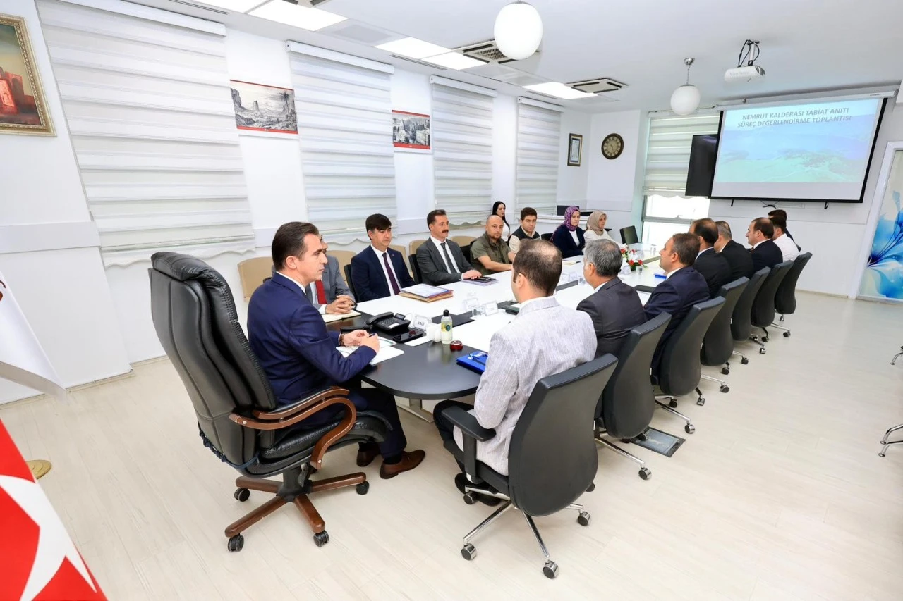 <div>Valilikten yapılan açıklamaya göre, valilik toplantı salonunda düzenlenen toplantıda, Nemrut Kalderası'nın doğal yapısının korunarak sürdürülebilir bir anlayışla halkın kullanımına sunulması hedefiyle yürütülmesi planlanan çalışmalar ele alındı.</div> <div>Toplantıda, ulaşım, altyapı, temizlik ve güvenlik başta olmak üzere bölgede ihtiyaç duyulan düzenlemeler kapsamlı şekilde değerlendirildi.</div> <div>Toplantıda, Nemrut Kalderası'nın jeolojik ve doğal değerlerinin korunarak turizm potansiyelinin artırılması için gerekli adımların atılması kararlaştırıldı.</div> <div>Toplantıya, vali yardımcıları ve kurum amirleri katıldı.</div>