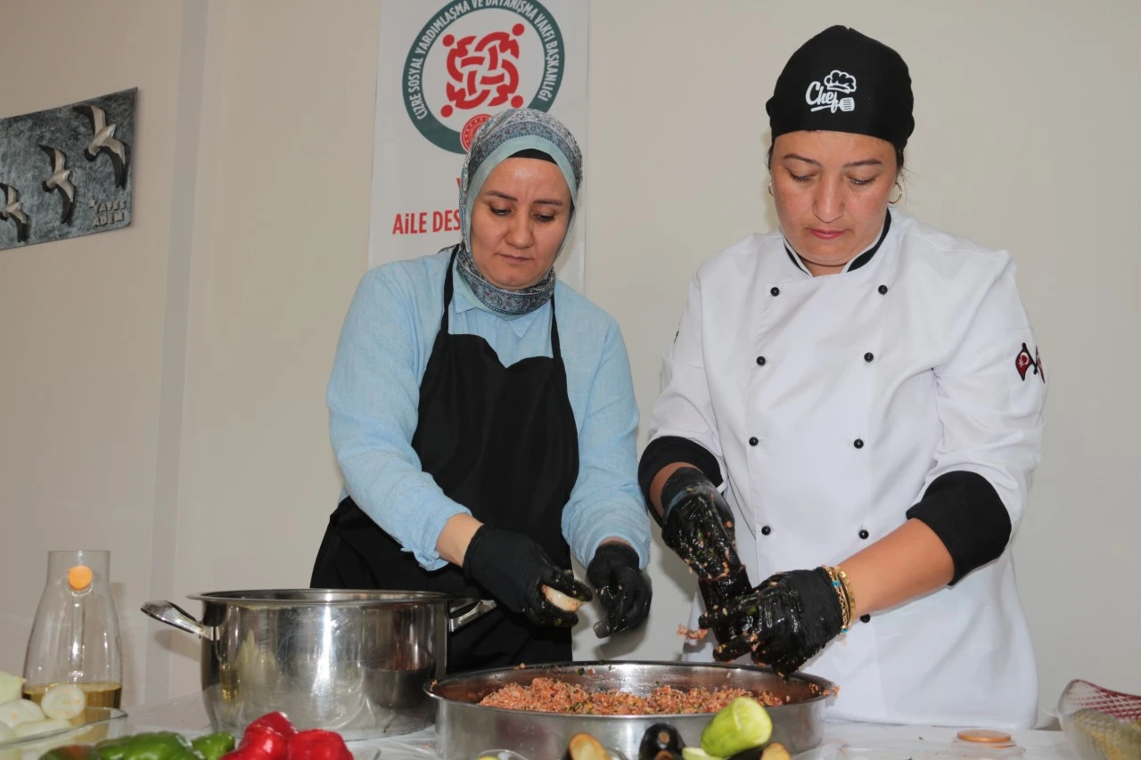 <div>Cizre Yafes Aile Destek Merkezince ilçede açılan "aşçı yardımcısı" kursuna katılan kursiyerlere, önce yöreye has tescilli yemeklerin tanıtımı yapılıyor.</div> <div>Kursta, teorik ve uygulamalı olarak verilen eğitimlerle birlikte, özelikle tescillenmiş yemeklerin yapımına yoğun ilgi gösteriliyor.</div> <div>Bu yemeklerden biri de 2017 yılında Türk Patent ve Marka Kurumu tarafından tescillenen Cizre dolması (Şımşıpe) oldu.</div> <div>Yafes Aile Destek Merkezi Koordinatörü Hayriye Gönül Yalazan, kadınların eğitim ve topluma kazandırılabilmesi faaliyetleri çerçevesinde her dönem farklı kurslar açtıklarını söyledi.</div> <div>Kursta Şımşıpe yemeğinin yapıldığını belirten Yalazan, dolmanın kadınların vazgeçilmezi olduğunu kaydetti.</div> <div>Nurhüda Pamukçu ise büyüklerinden öğrendikleri bu lezzeti gelecek kuşaklara aktarmak istediklerini belirtti.</div> <div></div> <div>(AA)</div>