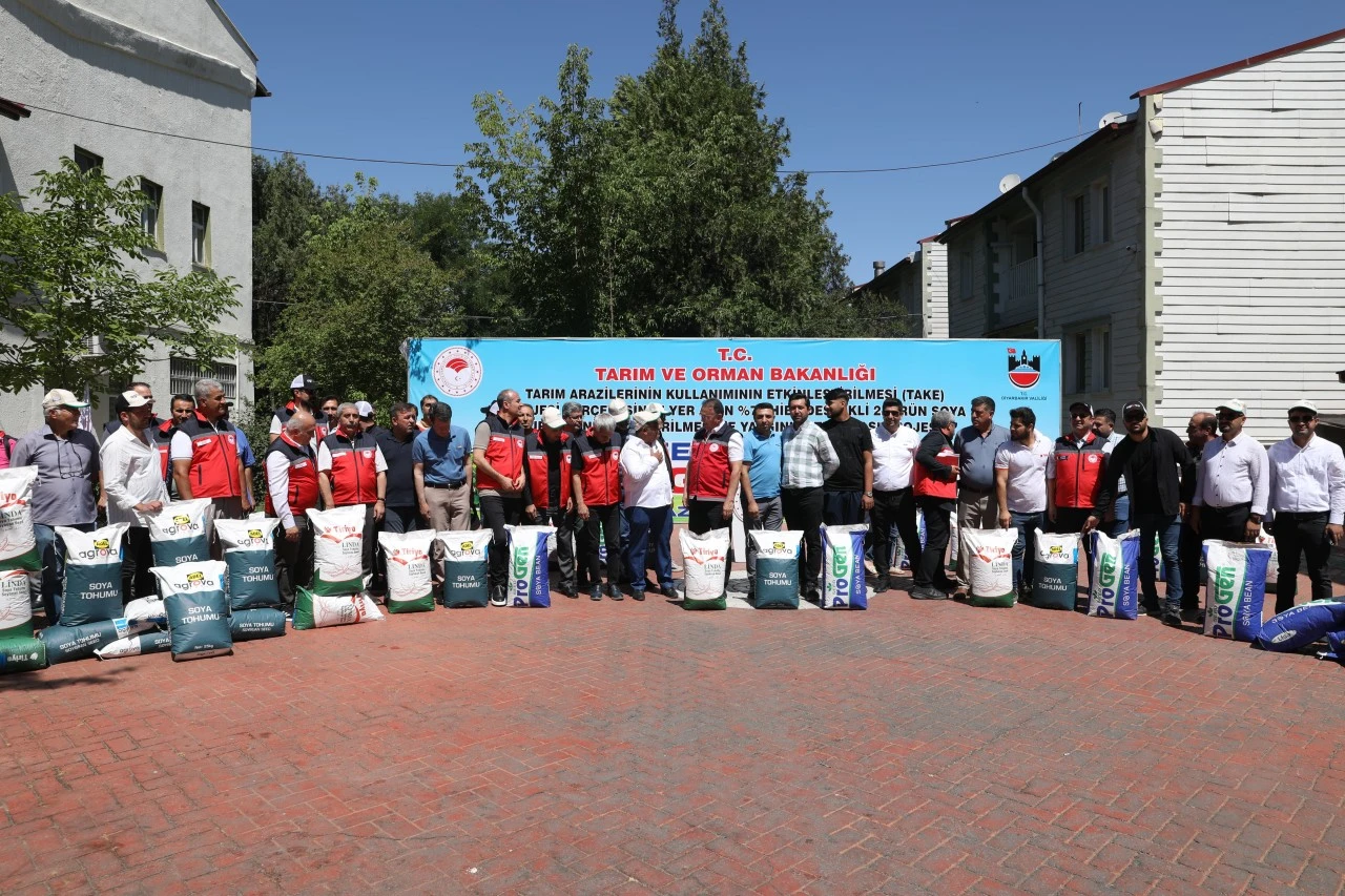<div>Tarım ve Orman İl Müdürlüğünden yapılan açıklamaya göre, Tarım ve Orman Bakanlığı Bitkisel Üretim Genel Müdürlüğünce hayata geçirilen proje doğrultusunda, 14 bin 237 dekar alanda soya ekimi için yüzde 75 hibe destekli 141,5 ton soya tohumu çiftçilere dağıtıldı.</div> <div>Müdürlüğün bahçesinde düzenlenen törende konuşan Tarım ve Orman İl Müdürü Adil Alan, soyanın Türkiye'nin tarımsal üretiminde yer alan önemli bir ürün olduğunu belirtti.</div> <div>Alan, şunları kaydetti:</div> <div>"Diyarbakır'ın verimli topraklarında bu ürünün yaygınlaşması için tüm imkanlarımızı seferber ediyoruz. Çiftçilerimizin bu projeye aktif katılımı, hem kendi ekonomilerini güçlendirecek hem de ülke tarımına büyük katkı sağlayacaktır."</div> <div>Törene, Tarım ve Orman İl müdür yardımcıları, bazı sivil toplum kuruluşların temsilcileri, teknik personel ve çiftçiler katıldı.</div> <div></div> <div>(AA)</div>