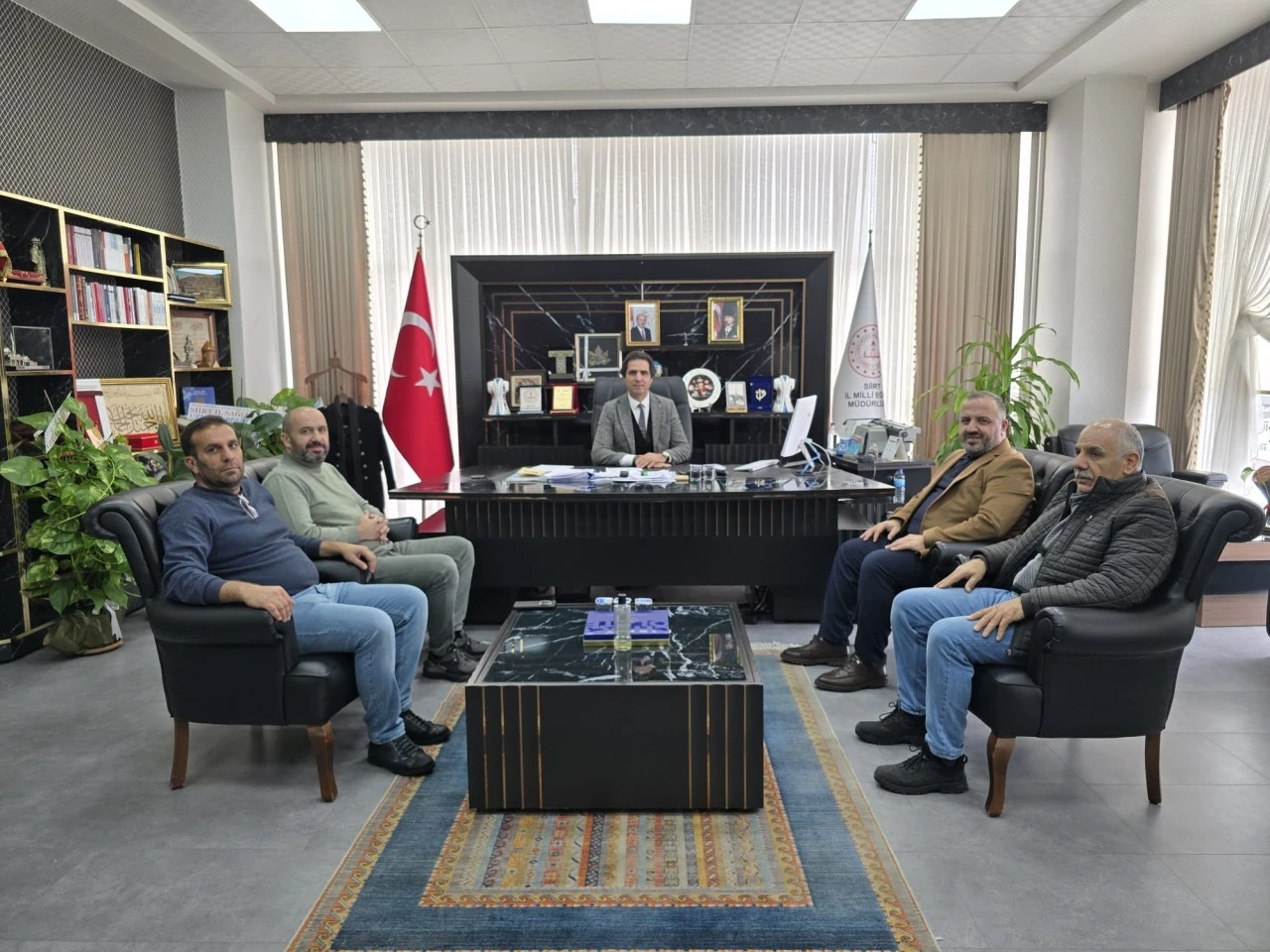 <div>Gerçekleştirilen ziyarette, eğitim camiasına yönelik çalışmalar ve sendikal faaliyetler hakkında karşılıklı görüş alışverişinde bulunuldu. Ziyaretten duyduğu memnuniyeti dile getiren İl Millî Eğitim Müdürü İlhan Saz, nazik ziyaretleri dolayısıyla Yusuf Sabaz ve Murat Şeker’e teşekkür etti.</div>