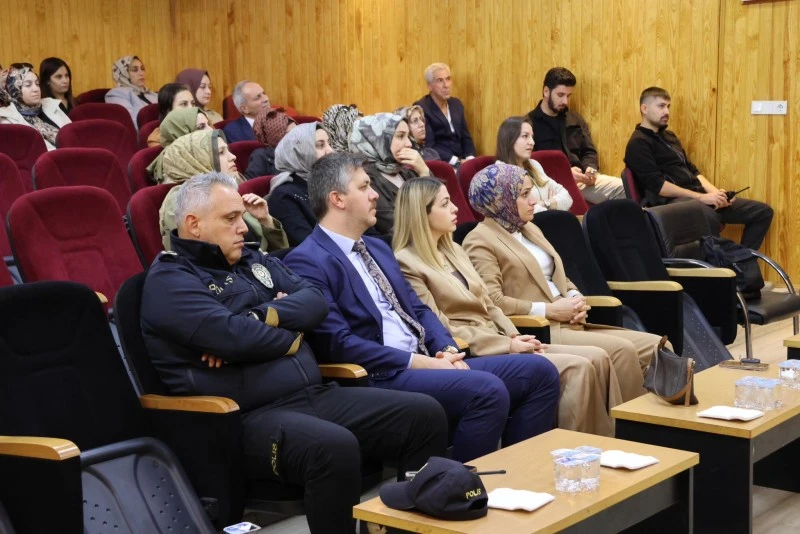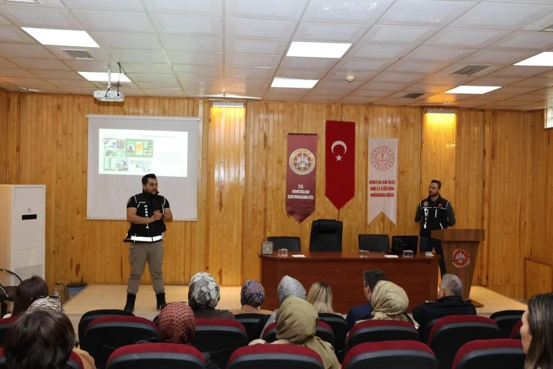 <div></div> <div>Kurtalan Kaymakamlığı koordinasyonunda, Siirt İl Emniyet Müdürlüğü Narkotik Suçlarla Mücadele Şube Müdürlüğü iş birliğiyle düzenlenen seminerde; uyuşturucu maddelerin tanımı, madde bağımlılığının belirtileri ve gençlerin uyuşturucuya yönelme nedenleri detaylı şekilde anlatıldı. Kurtalan Öğretmen Evinde düzenlenen programda ayrıca, uyuşturucu ile mücadelede vatandaşların aktif rol almasını sağlayan Uyuşturucuyla Mücadele Aplikasyonu (UYUMA) tanıtıldı.</div> <div></div> <div> “Uyuşturucu ile mücadelede en büyük destekçilerimiz annelerimiz”</div> <div>Kurtalan Kaymakamı Samet Serin, İçişleri Bakanlığı tarafından hayata geçirilen projenin, annelerin duyarlılığını artırmayı amaçladığını belirtti. Kaymakam Serin, uyuşturucu ile mücadelenin toplumun tüm kesimlerinin hassasiyetine ihtiyaç duyduğunu vurgulayarak, annelerden çocuklarını yakından takip etmelerini istedi.</div> <div>Kaymakam Serin, “Uyuşturucu ile mücadelede en büyük destekçilerimiz annelerimiz. Bu proje sayesinde annelerimizin bilinçlenmesi, gençlerimizin korunmasında kritik öneme sahip.” dedi.</div>