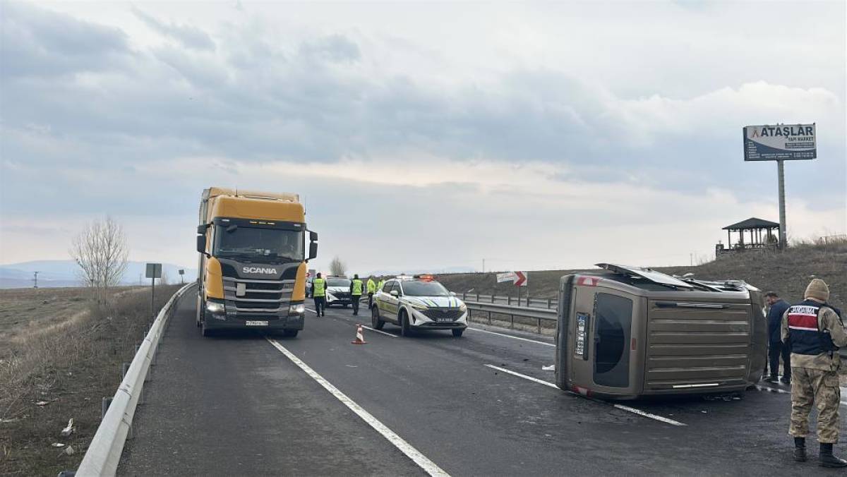 <div>ERZURUM (AA) - Erzurum'da devrilen hafif ticari araçtaki 2 kişi yaralandı.</div><div>Sürücüsünün ismi öğrenilemeyen 06 DJ 6896 plakalı hafif ticari araç, Erzurum-Pasinler kara yolunda refüje çarpıp devrildi.</div><div>İhbar üzerine bölgeye 112 Acil Sağlık, itfaiye, jandarma ile polis trafik ekipleri sevk edildi.</div><div>Kazada yaralanan araçtaki 2 kişi, ambulanslarla Atatürk Üniversitesi Eğitim Araştırma Hastanesi'ne kaldırıldı.</div><div>Bir süre tek şeritten sağlanan ulaşım, aracın kara yolundan çekici yardımıyla kaldırılmasının ardından normale döndü.</div>