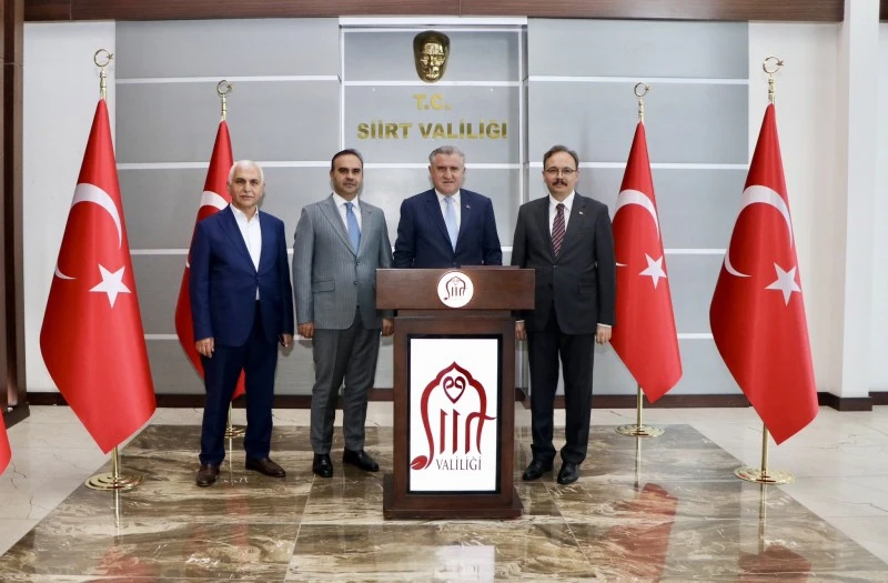 <div></div> <div>Gençlik ve Spor Bakanı Osman Aşkın Bak ile Sanayi ve Teknoloji Bakanı Mehmet Fatih Kacır, bir dizi program ve incelemelerde bulunmak üzere Siirt’i ziyaret etti. Siirt Valiliği’ne gerçekleştirilen ziyarette, her iki bakan Valilik Şeref Defteri’ni imzaladıktan sonra Vali Dr. Kemal Kızılkaya ile makamda bir araya geldi. </div> <div>Ziyarette; Siirt’te yürütülen gençlik merkezleri, spor tesisleri, yurt projeleri ve gençlere yönelik sosyal çalışmaların yanı sıra, ilin sanayi altyapısı, teknoloji yatırımları ve ekonomik gelişim potansiyeline dair konular ele alındı.</div> <div>Siirt Valiliği tarafından yapılan açıklamada, “Sayın Bakanlarımıza, ilimizde hayata geçirilen yatırım ve projelere verdikleri kıymetli desteklerden dolayı şükranlarımızı sunuyoruz” ifadelerine yer verildi.</div> <div> </div> <div>(Haber Merkezi)</div> <div> </div>