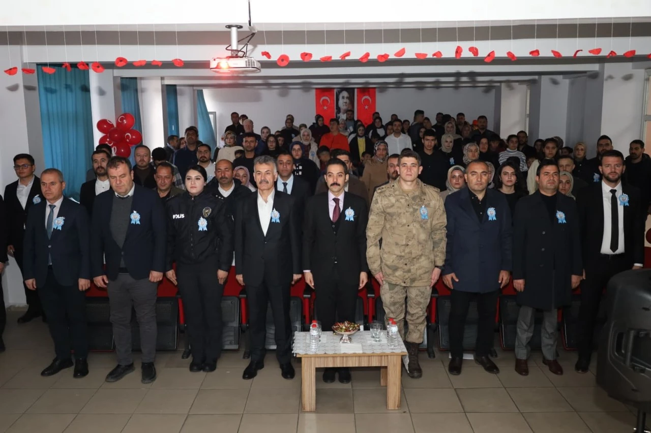 <div>İpekyolu Mesleki ve Teknik Anadolu Lisesi konferans salonunda düzenlenen program saygı duruşunda bulunulması ve İstiklal Marşı'nın okunmasıyla başladı.</div> <div>Program kapsamında öğrenciler şiirler okudu, gösteri yaptı.</div> <div>Öğrencilere hediyelerin verildiği programa, Güroymak Kaymakamı Mehmet Zahid Uzun, Güroymak Belediye Başkanı Eşref Mutlu, kurum amirleri ve vatandaşlar katıldı.</div>