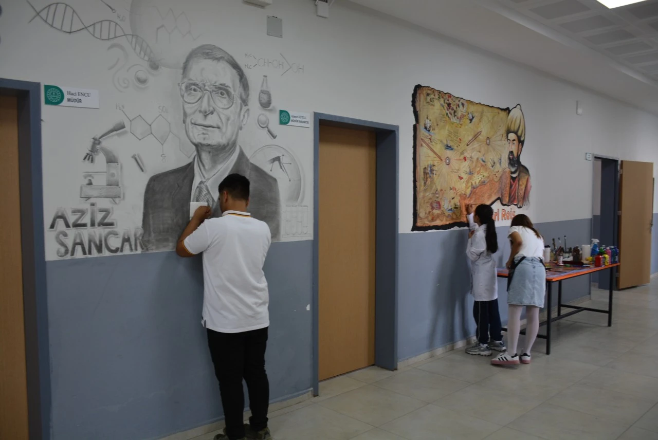 <div>Şırnak'ın Silopi ilçesinde Milli Eğitim Bakanlığına bağlı, zihinsel kapasitesi yüksek, üstün yetenekli çocuklara eğitim verilen Bilim ve Sanat Merkezinde (BİLSEM) yürütülen çalışma ile merkezin duvarlarına bilim insanlarının portreleri resmedildi.</div> <div>Silopi BİLSEM'de 2 yıldır görsel sanatlar öğretmeni olarak görev yapan Fahrettin Kaya, eğitime dahil ettiği okulun duvarlarını adeta tuvale dönüştürdü.</div> <div>Kaya, sanatsal yeteneklerini geliştirmeleri için öğrencilerle yürüttüğü çalışma ile merkezin duvarlarına başarılarıyla ilham olması amacıyla El Cezeri, Piri Reis ve Nobel ödüllü bilim insanı Aziz Sancar'ın resimlerini yaptı.</div> <div>Merkezin bir başka alanında ise öğrencilerin hayal gücünü geliştirmek ve bilimsel meraklarını teşvik etmek için uzay temasını işleyen Kaya, duvarlarda gezegenler ve astronot figürüyle astronomi yolu oluşturdu.</div> <div>- "Onlara estetik bir bakış açısı kazandırmayı hedefliyoruz"</div> <div>Bu çalışmalarla merkezin koridorlarını sanat atölyesine dönüştüren Fahrettin Kaya, AA muhabirine, öğrencilerle merkezin duvarlarını yalnızca görsel açıdan değil, aynı zamanda düşünsel ve duygusal açıdan da dönüştürmeye yönelik bir proje gerçekleştirdiklerini söyledi.</div> <div>Merkezin duvarlarını, bilim ve ilim insanlarının portreleriyle süsleyerek sanatı, bilimi ve tarihi bir araya getirmeye çalıştıklarını ifade eden Kaya, bu çalışmaların yalnızca birer duvar resmi olmadığını aynı zamanda öğrencilerin hayatlarına, düşünce dünyalarına ve duygularına dokunan birer sanatsal anlatım biçimi olduğunu vurguladı.</div> <div>Kaya, şöyle dedi:</div> <div>"Duvar çalışmalarımızda, El-Cezeri ve Nobel ödüllü bilim insanı Aziz Sancar gibi önemli şahsiyetlerin portrelerine yer verdik. Bir başka alanda ise öğrencilerimizin büyük ilgi duyduğu uzay temasını işleyerek koridor boşluklarından merdivenlere kadar uzanan 'astronomi yolu' oluşturduk. Amacımız çocukların geçmişte yaşamış büyük bilim insanlarını tanıması, onların başarı hikayelerinden ilham alarak, 'Ben de yapabilirim' duygusunu içselleştirmesi ve geleceğe umutla bakabilmesidir. Aynı zamanda bu çalışmalarla öğrencilerimizin sanatsal ifade becerilerini geliştirmeyi, görsel düşünme yeteneklerini artırmayı ve onlara estetik bir bakış açısı kazandırmayı hedefliyoruz. Sanat yoluyla öğrencilerimizin hem bireysel gelişimlerini destekliyor hem de onları bilimle, tarihsel kimliklerle ve evrensel değerlerle buluşturuyoruz."</div> <div>Öğrencilerden Zehranaz Sümmen, bilim insanlarının resimlerini duvara işlediklerini belirtti.</div> <div>Lina Feyruz Ökten de yaptıkları çizimlerle okulun koridorlarını eğitime dahil ettiklerini anlatarak, gördüklerini bu resimlerin motivasyonlarını artırdığını söyledi.</div> <div>- "Öğrencilerin bu değerlerle büyümesini önemsiyoruz"</div> <div>Silopi BİLSEM Müdürü Hacı Encu, merkezin koridorlarını bu topraklarda yetişmiş ve bilimde iz bırakmış şahsiyetlerin portreleri ile süslediklerini belirterek, gelecekte bilime katkıda bulunacak bu yetenekli öğrencilerin geçmişlerini, ecdatlarını bilerek eğitim almalarının önemine işaret etti.</div> <div>Encu, "Bu yetenekli öğrencilerin bu değerlerle büyümesini önemsiyoruz. Pedagojik açıdan da bakıldığında, renkli ve iç açıcı sınıfların öğrencilerin öğrenmelerinde olumlu katkı sağladığı açıktır. Sanatı eğitim ve öğretimle yoğurarak, özel yetenekli öğrencilerimizin eğitimine katkı sunan öğretmenimiz Fahrettin Kaya ile öğrencilerimize teşekkür ediyorum." diye konuştu.</div> <div></div> <div>(AA)</div>