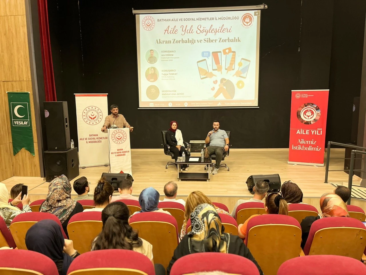 <div>Valilikten yapılan açıklamaya göre, Batman Yeşilay Şubesi ile Aile ve Sosyal Hizmetler İl Müdürlüğünce aile yılı söyleşileri kapsamında Şehit Şenay Aybüke Yalçın İl Halk Kütüphanesinde "Akran Zorbalığı ve Siber Zorbalık" konulu söyleşi düzenlendi.</div> <div>Batman Yeşilay Danışmanlık Merkezi Klinik Psikoloğu Tuğçe Tuncay, yaptığı sunumda çocukları siber zorbalıktan korumak için ekran kullanımının yaşa ve süresine dikkat edilmesi gerektiğini belirtti.</div> <div>Tuncay, internet ortamında gerçekleşen zorbalığın etkisinin ve yarattığı olumsuz duyguların yüz yüze yapılan zorbalıktan daha ağır olabileceğini kaydetti.</div> <div>Açıklamada görüşlerine yer verilen Aile ve Sosyal Hizmetler İl Müdürü Mehmet Zeki Eryarsoy, çocukların okul ve sosyal yaşam alanlarında sıkça zorbalığa maruz kaldığını anlattı.</div> <div>Akran zorbalığının basit bir çatışma olmadığını kaydeden Eryarsoy, "Uzun vadede depresyon, anksiyete, düşük özgüven ve yetişkinlikte süren travmalara yol açan toplumsal bir sorun. Bugün burada çocukların sessizce taşıdığı bu yükü görünür kılmak ve çözümün bir parçası olmak için bir araya geldik." ifadelerini kullandı.</div> <div></div> <div>(AA)</div>