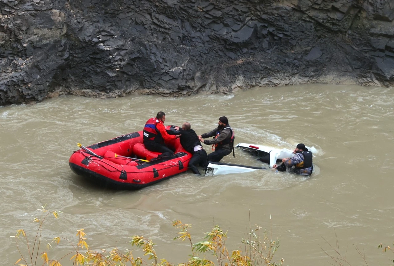 <div>Kent girişindeki Sere Solan mevkisinde sürücüsü ve plakası öğrenilemeyen pikap, kontrolden çıkarak yaklaşık 150 metrelik uçurumdan Zap Suyu'na düştü.</div> <div>İhbar üzerine olay yerine AFAD, UMKE, Jandarma Arama Kurtarma, 112 Acil Sağlık, itfaiye ve polis ekipleri sevk edildi.</div> <div>Suya indirilen botla araca ulaşan ekipler, AFAD gönüllüsü rafting antrenörleri Ramazan İlhan ve Selçuk Tunç'un da desteğiyle arka camı kırarak araçtaki 2 kişiyi yaralı kurtardı.</div> <div>Botla kıyıya getirilerek vatandaşların yardımıyla ambulanslara taşınan 2 yaralı, Hakkari Devlet Hastanesine götürüldü.</div> <div>Daha sonra vinç yardımıyla suyun kenarına alınan pikaptan çıkarılan Macit ve Sıtkı Dayan da ambulansla hastaneye kaldırıldı.</div> <div>Aracın düştüğünü görerek içindekilere yardım etmek için suya giren ve mahsur kalan bir kişi ise ekiplerce sudan çıkarıldı.</div> <div>Durumları ağır olan Macit ve Sıtkı Dayan, hastanedeki müdahaleye rağmen kurtarılamadı.</div> <div>Yaralılardan birinin durumunun iyi olduğu, diğerinin da Van'a sevk edileceği öğrenildi.</div> <div>Vinçle yolun kenarına çıkarılan pikap, çekiciye konuldu.</div> <div> </div>
