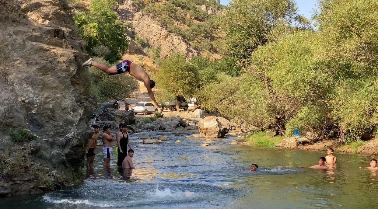 <div></div> <div>İlçede yaz mevsiminin en sıcak günleri yaşanıyor.</div> <div>Termometrelerin 35 dereceyi gösterdiği bölgede gençler ve çocuklar, serinlemek için derede serinliyor.</div> <div>Gökay köyü mevkisine gelen çocuklar, hem doğanın keyfini yaşadı hem de gün boyunca suda yüzdü.</div> <div>(AA)</div>