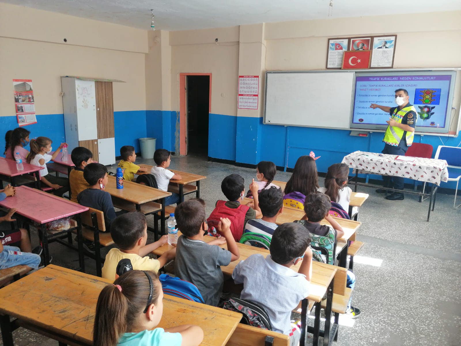 <div>Kurtalan İlçe Jandarma Komutanlığı trafik timi personelleri Gözpınar Anaokulu ve ilkokulunda trafik eğitimi verdi.Öğrencilerimize temel trafik kuralları, yayaların uyması gereken trafik kuralları, bisiklet kullanırken dikkat edilecek hususlar, emniyet kemeri ve trafik ışıkları ile okul servis araçları konusunda eğitim semineri verildi.Eğitim seminerlerinin ilçedeki okulların tamamında verileceği belirtildi. </div>