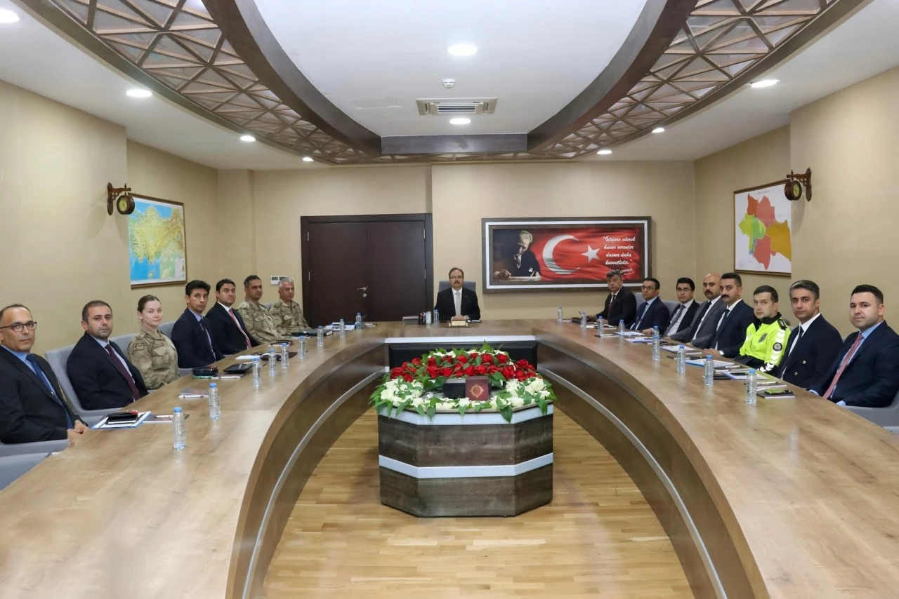 <div>Valilik binasında düzenlenen toplantıya emniyet, jandarma, sahil güvenlik ve ilgili kamu kurumlarının temsilcileri katıldı. Kentin genel güvenlik durumunun ele alındığı toplantıda; terörle mücadele, asayiş olayları, mali ve organize suç örgütleriyle mücadele, uyuşturucu ticaretinin önlenmesi, düzensiz göçle mücadele, okul çevrelerinin güvenliği, siber suçlarla mücadele ve trafik güvenliğine yönelik alınan tedbirler detaylı şekilde değerlendirildi.</div> <div>Toplantının ardından yapılan açıklamada, Siirt’in huzur ve güvenliğini sağlamak amacıyla tüm ilgili birimlerin 7 gün 24 saat esasına göre kararlılıkla görev yaptığı belirtildi.</div> <div></div> <div>(Haber Merkezi)</div>