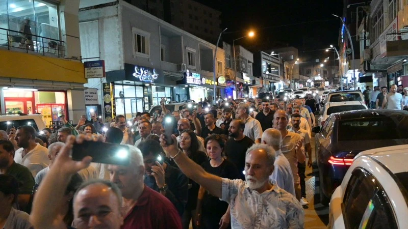 <div></div> <div></div> <div>Etkinlik, Eski Devlet Hastanesi önünde davul eşliğinde söylenen şarkılar ve çekilen halaylarla başladı. Katılımcılar, sloganlar eşliğinde Selahattin Eyyubi Caddesi’ne doğru yürüyüşe geçti. Yürüyüş sırasında birçok kişi cep telefonlarının fenerlerini açarak korteje eşlik etti.</div> <div></div> <div>Kortej, caddede yer alan iki park arasındaki, sanatçı Rojda’nın konser vereceği alana kadar devam etti.</div> <div>Etkinliğe, DEM Parti Siirt Milletvekili Sabahat Erdoğan Sarıtaş, Kurtalan Belediye Eş Başkanı Ali Rıza Bingöl, DEM ve DBP’nin Siirt ile Kurtalan ilçe eş başkanları, parti üyeleri ve çok sayıda vatandaş katıldı.</div> <div> </div> <div>(Ahmet Şinasi KILIÇASLAN)</div>