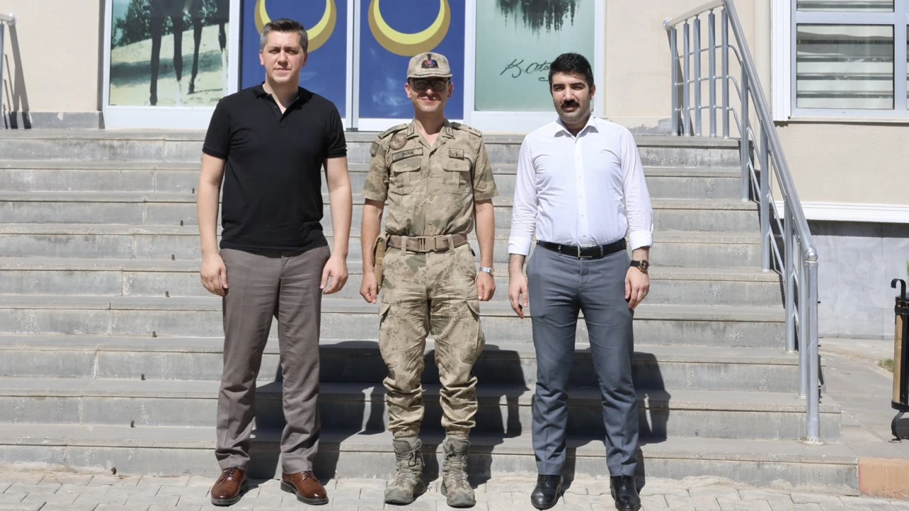 <div>Kaymakam Samet Serin ve Kurtalan Cumhuriyet Savcısı İzzet İzci, Binbaşı İlyas Ertuğrul İnan’a hayırlı olsun ziyaretinde bulundu. Ziyarette, yeni görevinde başarı dilekleri iletildi.</div> <div> </div> <div> </div> <div>(Haber Merkezi)</div> <div> </div>
