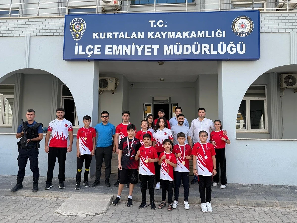 <div></div> <div>Kurtalan ilçesinden sporcular, Hatay’da 29-31 Ağustos 2025 tarihlerinde düzenlenen 1071 Sultan Muhammed Alparslan İller Arası Wushu Kungfu Şampiyonası’nda önemli dereceler elde ederek şampiyonluk madalyalarıyla ilçeye döndü.</div> <div>Şampiyon sporcular, başarılarının ardından Kurtalan İlçe Emniyet Müdür Vekili Burak Özalp’i ziyaret etti. Özalp, sporcuları tebrik ederek geleceğe ışık olmaları yolunda nasihatlerde bulundu.</div> <div>Ziyaret kapsamında sporculara İlçe Emniyet Müdürlüğü tanıtıldı, hizmet araçları gezdirildi. Sporcular, gösterilen ilgi ve destekten dolayı memnuniyetlerini dile getirerek Müdür Vekili Özalp’e teşekkür etti.</div> <div> </div> <div>(Ahmet Şinasi KILIÇASLAN)</div>