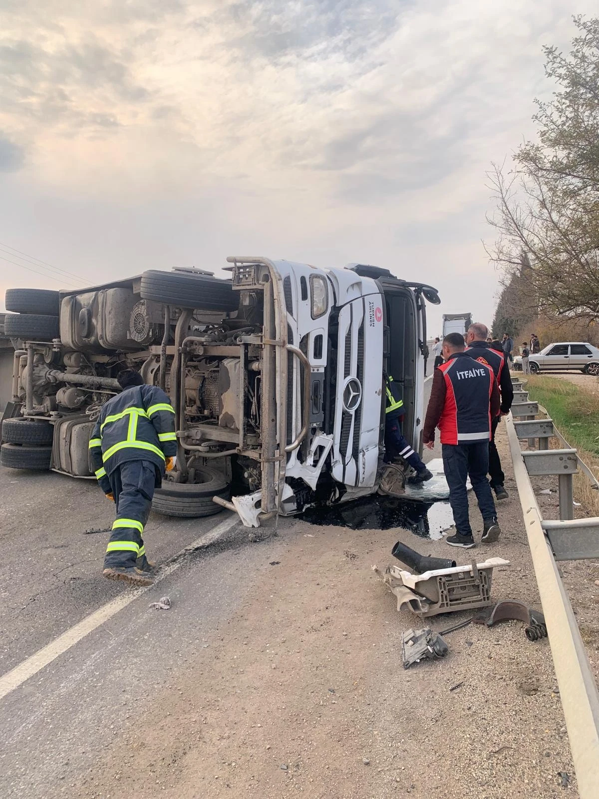 <div>Sürücüsünün ismi henüz öğrenilemeyen 33 AVG 490 plakalı tır, Eymirli Mahallesi mevkisinde devrildi.</div> <div>Kazada, sürücü yaralandı.</div> <div>İhbar üzerine bölgeye 112 Acil Sağlık, itfaiye ve polis ekipleri sevk edildi.</div> <div>Yaralı, ambulansla Kızıltepe Devlet Hastanesi'ne kaldırıldı.</div>