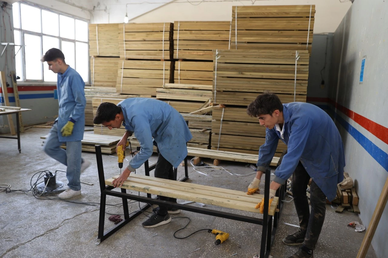 <div>Mardin'in Kızıltepe ilçesindeki Mimar Sinan Mesleki ve Teknik Anadolu Lisesi öğrencileri, taziyeevleri ile park ve bahçeler için çeşitli malzemeler üretiyor.</div> <div>Mardin Büyükşehir Belediyesi ile yapılan protokol çerçevesinde öğrenciler, sedir, oturma bankı, piknik masası, çardak, saksı ve çöp kovası üretimi için kolları sıvadı.</div> <div>Mobilya ve İç Mekan Tasarımı ile Metal Teknolojisi alanlarında eğitim gören 60 öğrenci, 12 öğretmen gözetiminde ilin tamamına dağıtılmak üzere ilk etapta 300 piknik masası, 400 bank, 500 saksı, 500 çöp kovası ve 200 sedir yapmaya başladı.</div> <div>İlçe Milli Eğitim Müdürü Abdulkadir Gümüş, AA muhabirine, okulda Mardin Büyükşehir Belediyesi ile yapılan protokol gereği 5 çeşit ürün yaptıklarını söyledi.</div> <div>Taziyeevlerine sedir, şehrin farklı noktalarında kullanılacak saksı, çöp kovaları ile park ve bahçelere bank ve piknik masaları ürettiklerini belirten Gümüş, şunları kaydetti:</div> <div>"Üretimler devam ediyor. Yapılan ürünleri belediye ekipleri ihtiyaç duyulan yerlere götürüyor. Büyükşehir Belediyesi ile 23 milyon liralık bir protokol imzaladık. Büyükşehir Belediyemizin çalışmaları bu şekilde devam ederse yılsonu itibarıyla ciromuz 30 milyon lirayı bulacaktır. Atölyelerimizde tam kapasite ile 60 öğrencimiz sürekli çalışabiliyor. Öğrencilerimiz bir asgari ücret alabiliyor. Büyükşehir Belediyemiz bu protokol ile öğrencilerimizin istihdamına ve şehrimizin güzelleşmesine katkı sunuyor."</div> <div>Mardin Büyükşehir Belediyesi Çevre Koruma ve Kontrol Daire Başkanı Halef Eraslan ise Vali ve Büyükşehir Belediyesi Başkan Vekili Tuncay Akkoyun'un talimatıyla yapılan protokol çerçevesinde kent donatılarını vatandaşların hizmetine sunduklarını anlattı.</div> <div>Öğrencilerden Hamdullah Akkoyun da okulda üretim yaptıkları için mutlu olduklarını söyledi.</div> <div>Metal teknolojisi alanında mesleğin birçok inceliklerini öğrendiğini kaydeden Akkoyun, ileride iş yeri açmak istediğini anlattı.</div> <div>Şahin Tarhan ise mobilya bölümünde eğitim gördüğünü ve öğretmenlerinin desteğiyle meslek öğrendiklerini dile getirdi.</div> <div></div> <div>(AA)</div>