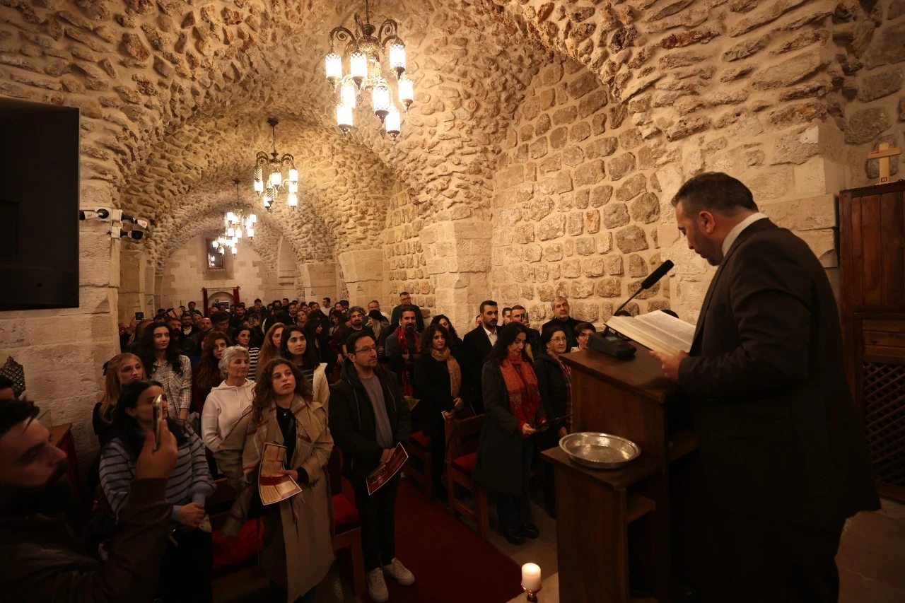 <div></div> <div>Mardin Protestan Kilisesi'nde Noel ayini yapıldı.</div> <div>Merkez Artuklu İlçesindeki tarihi ibadethanede Mardin Protestan Kilisesi papazı Ender Peker ve yardımcısı İbrahim Ok yönetiminde düzenlenen ayinde, Hz. İsa'nın hayatı anlatıldı.</div> <div>Türkçe ve Kürtçe ilahilerin okunduğu ayinde, dualar edildi.</div> <div>Ayinin ardından kilise bahçesinde davetliler, birbirlerinin bayramını kutladı.</div> <div>Ayin sonrası açıklama yapan Peker, farklı etnik yapıların bir arada yaşadığı şehirde Noel Bayramını kutladıklarını söyledi.</div> <div>Tarihi kentte ilk kez bayramı gece kutladıklarını ifade eden Peker, Hz. İsa'nın doğuşunun bu ayın 24'ünün 25'e bağlayan gece olduğunu, bu nedenle kutlamayı gece yaptıklarını kaydetti.</div> <div>Mardin'de farklı etnik yapıların bir arada huzur içinde yaşadığının dile getiren Peker, bu birlikteliğin bütün dünyaya rol model olabileceğini belirtti.</div> <div>Peker şöyle konuştu:</div> <div>"Mardin, iyi bir örnektir dünyaya. Birçok farklı kimliğin, dinin bir arada yaşadığı bir yerdir. Burada birbirimizi severiz, birbirimizin bayramlarını kutlamaya gideriz. Biz Hristiyanız, Müslüman arkadaşlarımızın bayramı olur, onların evine gideriz. Köylere gideriz, bayramlarını kutlarız. Onlar buraya gelirler. İnsanız ve kardeşiz. Bu nedenle de o şekilde bakıyoruz birbirimize. O sevgiyle, o kardeşlik ruhuyla bakıyoruz birbirimize."</div> <div>Bayramın başta Orta Doğu olmak üzere bütün dünyaya barış getirmesini temenni ettiklerini belirten Peker, "Barış ve huzur için dua ediyoruz. Sürekli ayinlerimize de bunu söylüyoruz. Bu bayramda bunun için dua ediyoruz, tanrıya yalvarıyoruz. Bütün Hristiyan aleminin de Noel bayramını kutluyoruz. Sevgiyle, sevinçle, esenlikle geçmesini diliyoruz. Ülkemiz için ve Orta Doğu için ve dünyamız için barış huzur ve esenlik getirmesini diliyoruz." ifadelerini kullandı.</div>