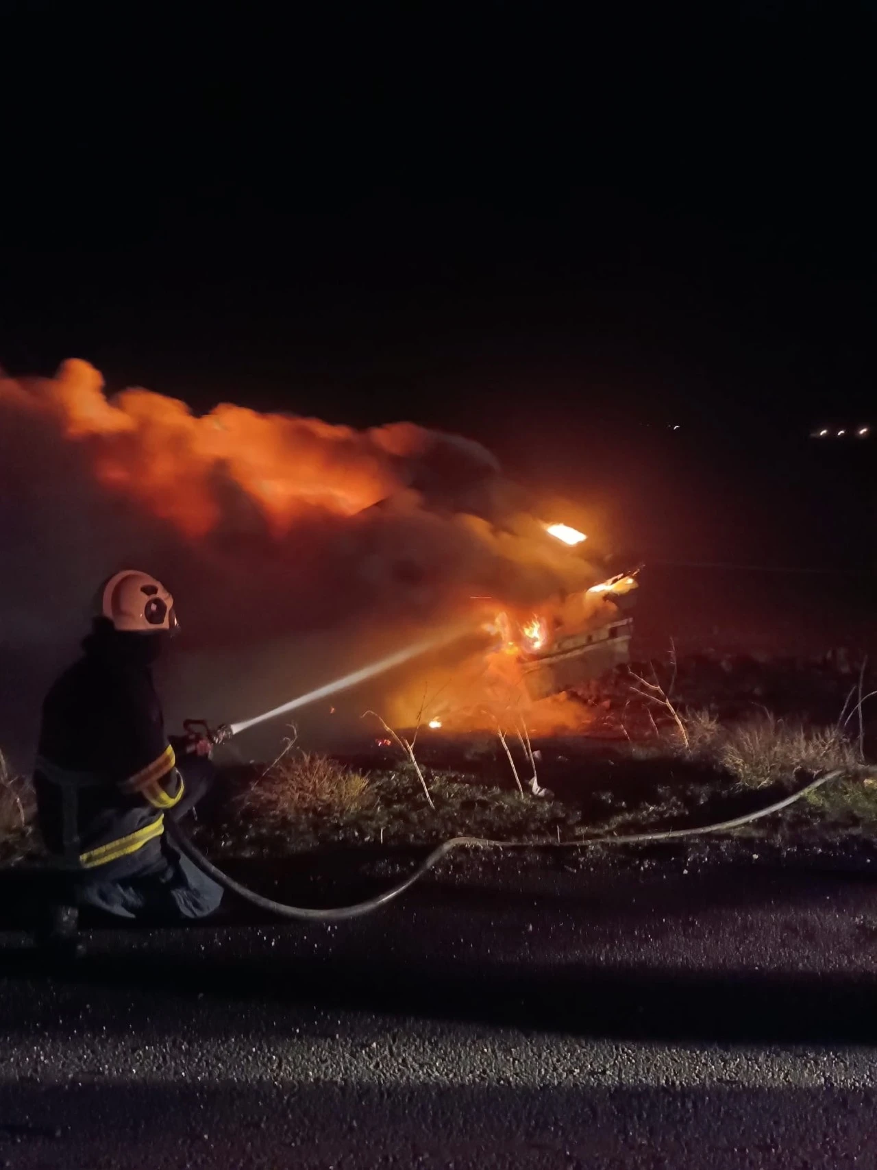 <div>Sürücüsünün kimliği ve plakası henüz öğrenilemeyen tır, Turgutlu Mahallesi mevkisinde devrildi.</div> <div>Kaza sonrası araçta yangın çıktı.</div> <div>İhbar üzerine bölgeye itfaiye ve 112 Acil Sağlık ekipleri sevk edildi.</div> <div>İtfaiye ekiplerinin müdahalesiyle söndürülen yangında, tır hasar gördü.</div>