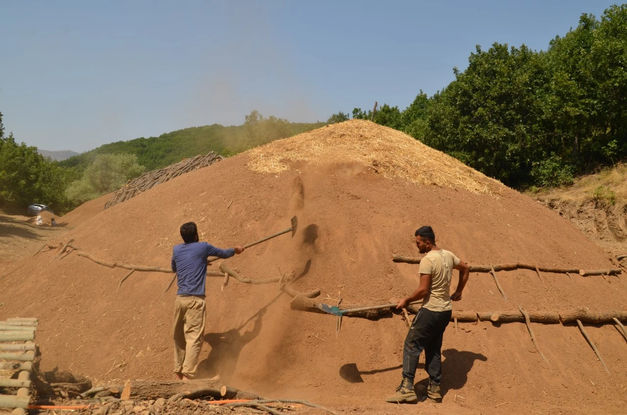 <div>Memleketleri Mardin'den Muş'a gelerek kurdukları çadırlarla yaşayan 12 aile, sıcaklığın 40 dereceyi bulduğu bölgedeki ormandan kesim izni verilen meşe odunlarını traktörlere yüklüyor.</div> <div>Belirlenen alana getirilen odunları ocaklarda istifleyip üstünü toprakla kapattıktan sonra yakan işçiler, yaklaşık 20 gün boyunca ateş başında nöbet tutuyor.</div> <div>Elleri ve yüzleri kömür karasıyla kaplanan işçilerin ateş başında verdikleri zahmetli mücadeleye eş ve çocukları da destek oluyor.</div> <div>İşçiler, sıcak hava ve yakılan kömürün yaydığı ısıya rağmen günlerce mangal kömürü elde ediyor.</div> <div>Kömür üreticisi Mehmet Şerif Sazan, basın mensuplarına, Orman İşletme Müdürlüğünce belirlenen alanda mangal kömürü ürettiklerini söyledi.</div> <div>Yazın 6 ay boyunca mangal kömürü ürettiklerini belirten Sazan, "Sabah saat 5'te kalkıp bu işe başlıyoruz. Odunları alana getirdikten sonra üzerini saman ve toprak örtülü ocaklarda özel yöntemlerle yaklaşık 25 gün yakarak mangal kömürü elde ediyoruz. Elde edilen kömür çuvallara doldurulup toptancılara satılıyor. Kömürü İstanbul, Ankara, Samsun, Erzurum, Diyarbakır, Malatya gibi birçok yere gönderiyoruz." dedi.</div> <div>- "Çok zor ve meşakkatli bir iş"</div> <div>Yılda yaklaşık 600 ton mangal kömürü ürettiklerini ifade eden Sazan, şunları kaydetti:</div> <div>"Bu işin uzmanı olduğumuz için artık bu iş bize zor gelmiyor. Aslında çok zor ve meşakkatli bir iş. 15 yıldır mangal kömürü üreticisiyim. Bizim için bir meslek haline gelmiş. Herkes bu işi yapamaz. Ateşle alakalı bir şey değil. Bu dumanın gücüyle odunlar mangal kömürü oluyor. Ormanlık alanda yapılan işlemler sırasında yangın çıkmaması ve kömürlerin yanmaması için de gece gündüz nöbet tutuluyor. Burada ailece herkes çalışıyor. Zaman zaman çocuklar bile bize destek veriyor."</div> <div>Üç çocuk annesi Mesude Sazan da bölgenin zorlu koşullarına rağmen mangal kömürü üreterek aile ekonomisine katkı sağladığını dile getirdi.</div> <div>Eşi ile yaklaşık 10 yıldır bu işi yaptıklarını anlatan Sazan, "Burada kurduğumuz çadırlarda yaklaşık 5 ay kalıyoruz. Kadınlar olarak sabah erken kahvaltı yapıyoruz. Akşam saat 7'ye kadar çalışıyoruz. Bir taraftan ev işi yapıyoruz bir taraftan kömür işinde çalışıyoruz. Geçim kaynağımız budur." diye konuştu.</div> <div>(AA)</div>