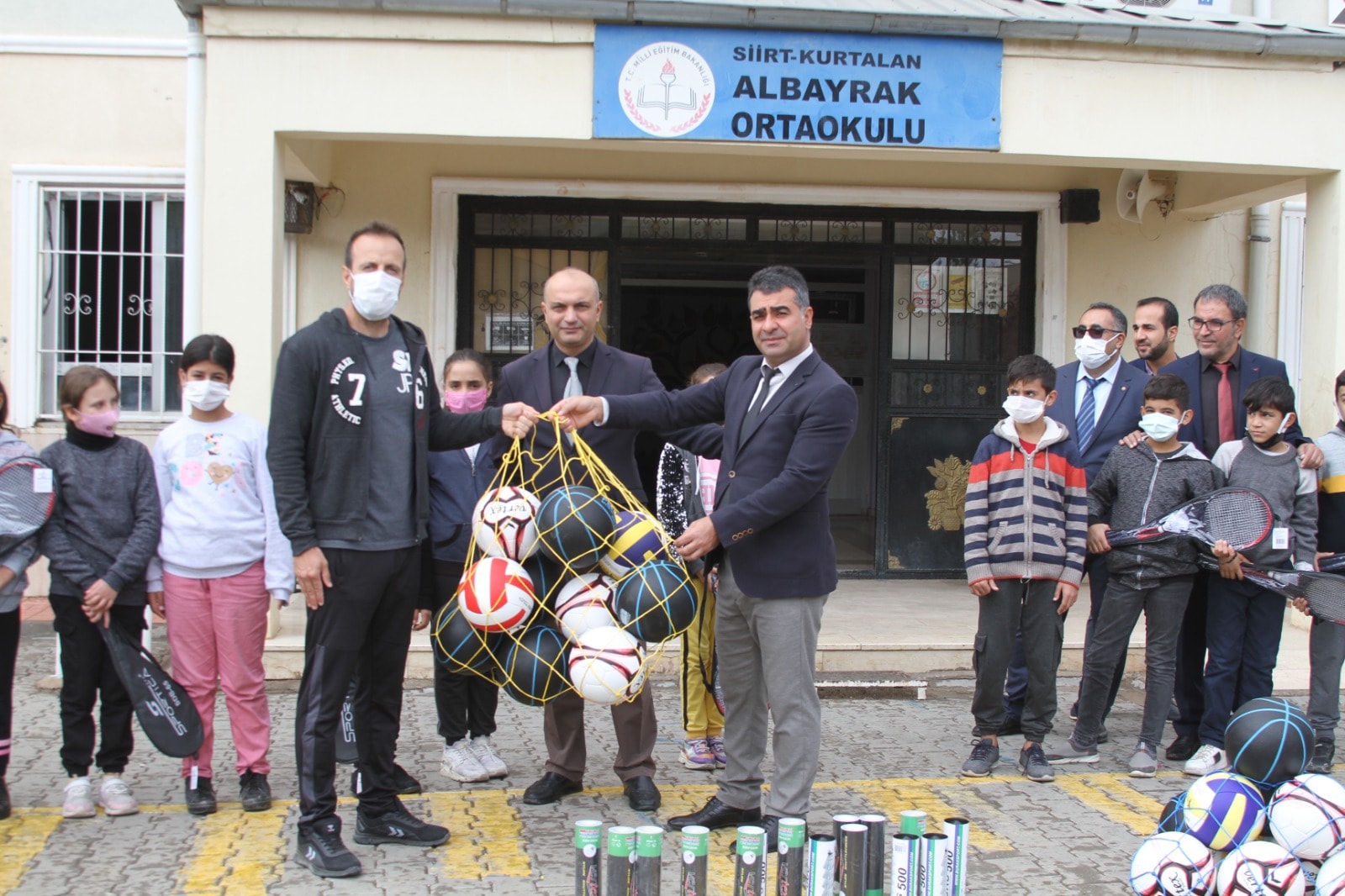 <div>Kurtalan Kaymakamı ve Belediye Başkan Vekili Çağlar Tekin, okullarda eğitim gören öğrencilerin kişisel gelişimine yönelik önemli yatırımlarda bulunduklarını belirterek, öğrencilerin sosyalleşmesini sağlamak, onları kötü alışkanlıklardan uzak tutarak spora yönlendirmek amacıyla farklı sporsal faaliyetlerde kullanabilecekleri çeşitli malzemeler dağıtıldığını söyledi. </div>