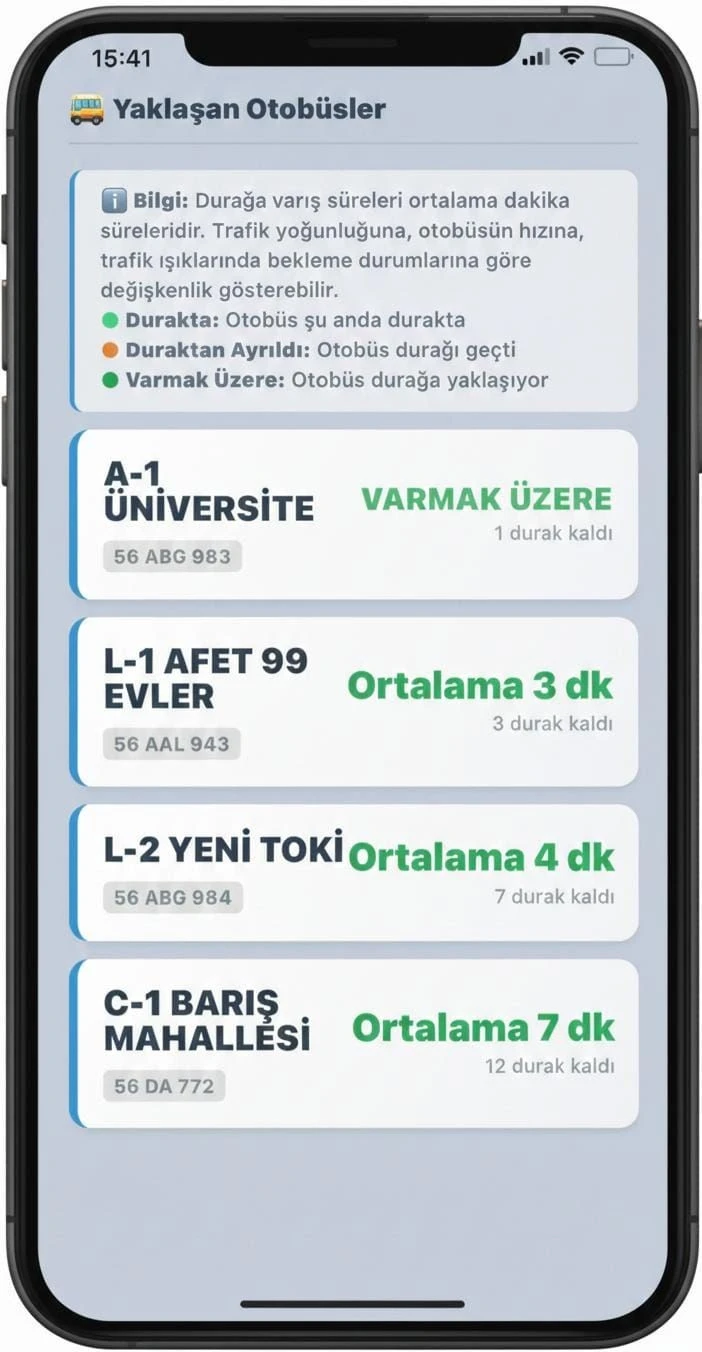 <div></div> <div>Siirt Belediyesi tarafından yapılan açıklamada, şehir içi ulaşım kalitesini artırmak ve vatandaşların zaman yönetimini kolaylaştırmak amacıyla geliştirilen Canlı Durak Bilgi Sistemi’nin devreye alındığı bildirildi. Çalışmanın, Belediye Bilgi İşlem Müdürlüğü tarafından tamamen belediyenin kendi imkânlarıyla ve yerli yazılım altyapısıyla hayata geçirildiği belirtildi.</div> <div>Sistem kapsamında duraklara yerleştirilen karekodlar (QR kod) cep telefonlarıyla okutularak, herhangi bir mobil uygulama indirmeye gerek kalmadan bilgilere erişim sağlanabiliyor. Vatandaşlar bu sayede bekledikleri otobüsün durağa tahmini varış süresini ve güzergâh üzerindeki kaçıncı durakta olduğunu anlık olarak görebiliyor.</div> <div>Belediye açıklamasında, dijital altyapı destekli bu uygulama ile toplu taşımada planlamanın daha kolay yapılmasının hedeflendiği, bekleme sürelerinin daha verimli yönetileceği ve vatandaş odaklı dijital belediyecilik anlayışının güçlendirileceği vurgulandı.</div> <div>Canlı Durak Bilgi Sistemi’nin yaygınlaştırılmasıyla birlikte şehir içi ulaşımda hem konforun hem de hizmet kalitesinin artırılması amaçlanıyor.</div> <div> </div>