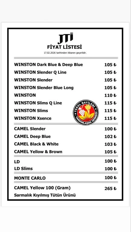 <div>Sigara fiyatlarına yeni bir zam daha eklendi. Tekel Bayileri Yardımlaşma Derneği Başkanı Erol Dündar, sosyal medya üzerinden yaptığı açıklamada JTI grubundaki sigaralara zam geldiğini duyurdu. Zamlı fiyatların 17 Şubat itibarıyla yürürlüğe gireceği bildirildi.</div> <div>Açıklamaya göre zam kararı, Japan Tobacco International (JTI) bünyesinde bulunan Winston, Camel, LD ve Monte Carlo markalarını kapsıyor. Güncellenen satış listesine göre gruptaki ürünlerde en düşük fiyat 100 liraya, en yüksek fiyat ise 115 liraya yükseldi.</div> <div>Tekel bayileri, yeni fiyat etiketlerinin yarından itibaren raflara yansıtılacağını belirtirken, sektör temsilcileri maliyet artışlarına bağlı olarak yıl içinde yeni fiyat güncellemeleri olabileceğine dikkat çekiyor.</div> <div> </div>