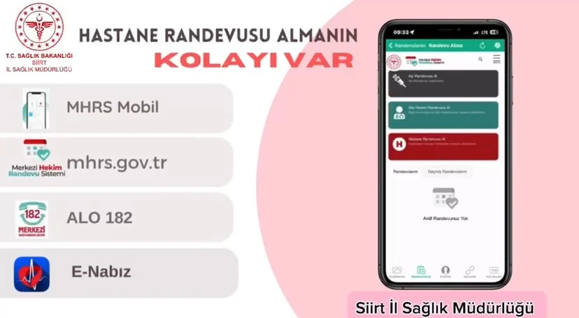 <div>Sağlık Bakanlığı tarafından hayata geçirilen ve ülkemizin en önemli dijital sağlık projelerinden biri olan MHRS, hastane ve aile hekimlerinden randevu almayı daha planlı, düzenli ve erişilebilir hale getiriyor.</div> <div>Hazırlanan animasyonda MHRS’ye giriş yöntemleri, randevu oluştururken dikkat edilmesi gereken adımlar, Alo 182 üzerinden randevu alma imkânı, online randevu iptal ve güncelleme seçenekleri anlaşılır bir şekilde aktarılıyor.</div> <div>Hastane yönetimi, bu çalışma ile hem vatandaşların sağlık hizmetlerine erişimde zaman kaybını önlemeyi hem de hastane yoğunluğunu azaltarak daha konforlu bir sağlık hizmeti sunmayı amaçlıyor.</div> <div>Siirt Eğitim ve Araştırma Hastanesi’nden yapılan açıklamada, “MHRS yalnızca randevu almak için değil, aynı zamanda sağlık hizmetlerinin planlı ve düzenli işleyişine katkı sağlayan önemli bir sistemdir. Tüm vatandaşlarımızı bu sistemi aktif olarak kullanmaya davet ediyoruz. Hazırladığımız tanıtım animasyonunun sürece ışık tutacağına inanıyoruz” denildi.</div> <div> (Haber Merkezi)</div>