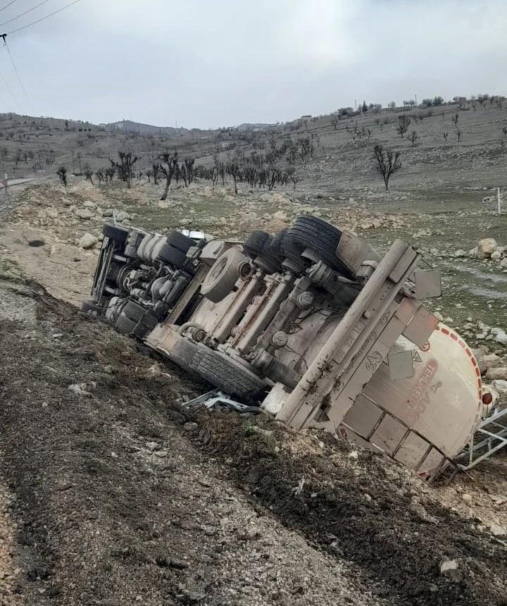 <div>R.E. idaresindeki plakası henüz öğrenilemeyen tanker, Şırnak-Siirt kara yolunun Sanayi Sitesi Kavşağı'nda şarampole devrildi.</div> <div>İhbar üzerine bölgeye 112 Acil Sağlık, itfaiye ve polis ekipleri sevk edildi.</div> <div>Kazada yaralanan sürücü ambulansla Şırnak Devlet Hastanesi'ne kaldırıldı.</div> <div> </div>