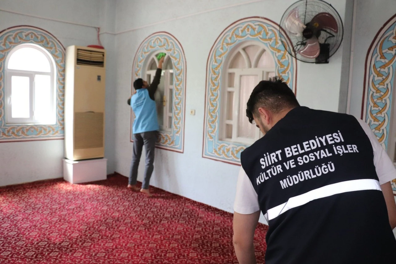 <div></div> <div>Belediye ekipleri tarafından yürütülen temizlik çalışmaları kapsamında, cami halıları özenle yıkanarak gül kokulu dezenfektanlarla ferahlatılıyor. Ayrıca cami içindeki kapılar, camlar, ahşap yüzeyler, kitaplıklar ve fayanslar da detaylı bir şekilde temizleniyor.</div> <div>Çalışmaların şehir genelindeki tüm cami ve mescitleri kapsayacak şekilde planlandığını belirten yetkililer, temizlik hizmetlerinin düzenli aralıklarla devam edeceğini vurguladı. Siirt Belediyesi, bu uygulama ile hem toplu ibadet alanlarının hijyen standartlarını yükseltiyor hem de vatandaşlara daha sağlıklı bir ibadet ortamı sunmayı hedefliyor.</div> <div> </div> <div>(Haber Merkezi)</div>