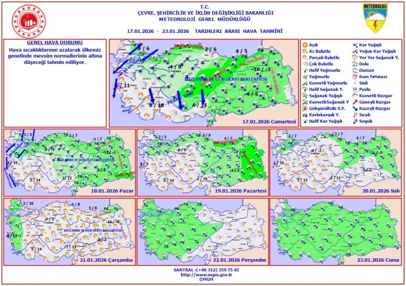 <div>Meteoroloji Genel Müdürlüğü’nün 17–23 Ocak 2026 tarihleri arasını kapsayan hava tahmin raporuna göre, Siirt genelinde hava sıcaklıklarının hissedilir derecede azalması, yer yer kar yağışı, don ve buzlanma olaylarının etkili olması bekleniyor.</div> <div>Yapılan değerlendirmelere göre Siirt ve çevresinde hafta sonundan itibaren soğuk hava dalgası etkisini artıracak. Özellikle yüksek kesimlerde kar yağışının, gece ve sabah saatlerinde ise don ve buzlanmanın ulaşımı olumsuz etkileyebileceği bildirildi.</div> <div>Meteoroloji yetkilileri, Siirt’te yaşayan vatandaşların özellikle sürücülerin, çiftçilerin ve hayvancılıkla uğraşan üreticilerin dikkatli olması gerektiğini vurguladı. Tarımsal faaliyetlerin yoğun olduğu bölgelerde zirai don riski bulunduğu ifade edilirken, gerekli tedbirlerin alınması çağrısında bulunuldu.</div> <div>Hafta ortasına kadar soğuk havanın etkisini sürdüreceği Siirt’te, Perşembe ve Cuma günleri itibarıyla yağışların azalması ancak soğuk havanın devam etmesi bekleniyor.</div> <div></div>