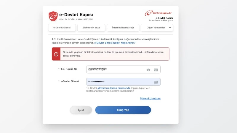 <div></div> <div>Sabah saatlerinden itibaren yaşanan erişim sorunu nedeniyle birçok vatandaş işlemlerini gerçekleştiremiyor. E-Devlet Kapısı’na giriş denemelerinde aynı uyarı ekranı ile karşılaşan kullanıcılar, sistemin kilitlendiğini belirtiyor.</div> <div><strong>Nedeni Sosyal Konut Başvurusu Yoğunluğu</strong></div> <div>Yaşanan teknik aksaklığın, “500 bin sosyal konut projesi”ne yoğun başvuru nedeniyle oluştuğu tahmin ediliyor. Başvuru ekranına aynı anda on binlerce kişinin erişmeye çalışması sonucu sistemde geçici yavaşlama ve erişim hatası meydana geldiği belirtiliyor.</div> <div><strong>Yetkililerden Açıklama Bekleniyor</strong></div> <div>Konuya ilişkin yetkililerden henüz resmi bir açıklama yapılmadı. Vatandaşlara işlemlerini daha sonraki saatlerde tekrar denemeleri öneriliyor.</div> <div>İşte e-Devlet’e girmek isteyenlerin karşılaştığı uyarı ekranı:</div> <div>“Sistemde yaşanan bir teknik aksaklık nedeni ile işleminiz tamamlanamadı. Lütfen daha sonra tekrar deneyiniz.”</div>