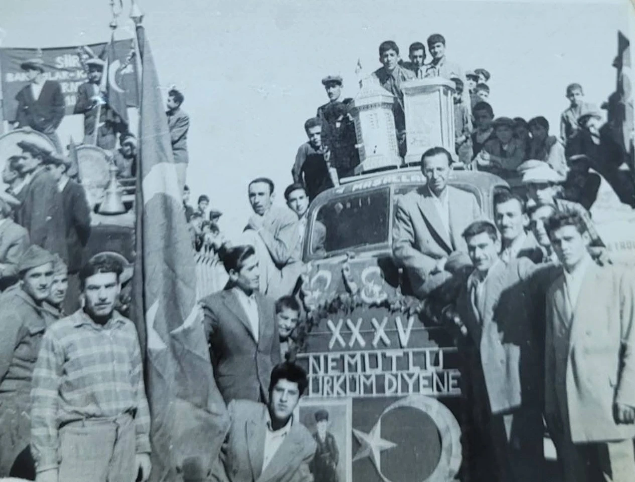 <div data-end="746" data-start="471">O yıllara ait bir kare, Siirtli fotoğraf koleksiyoneri Faik Kuzu’nun arşivinden gün yüzüne çıktı. 1958 yılında, Cumhuriyet’in 35. yılı kutlamalarında çekilen fotoğrafta bakırcılar ve sobacılar, mesleklerini temsil eden sini, gümgüm ve el yapımı sobalarla kortejde yer alıyor.</div> <div data-end="932" data-start="748">Fotoğrafta yer alan bazı kişilerin isimleri yıllar sonra yakınları tarafından teşhis edilirken, törende sergilenen 6 köşeli özel yapım soba ise dönemin ustalık geleneğine ışık tutuyor.</div> <div data-is-only-node="" data-is-last-node="" data-end="1077" data-start="934">Paylaşılan bu kare, Siirt’te bayramların geçmişte nasıl bir heyecan, birlik ve dayanışma içinde kutlandığını bir kez daha gözler önüne seriyor.</div> <div>(Haber Merkezi)</div>