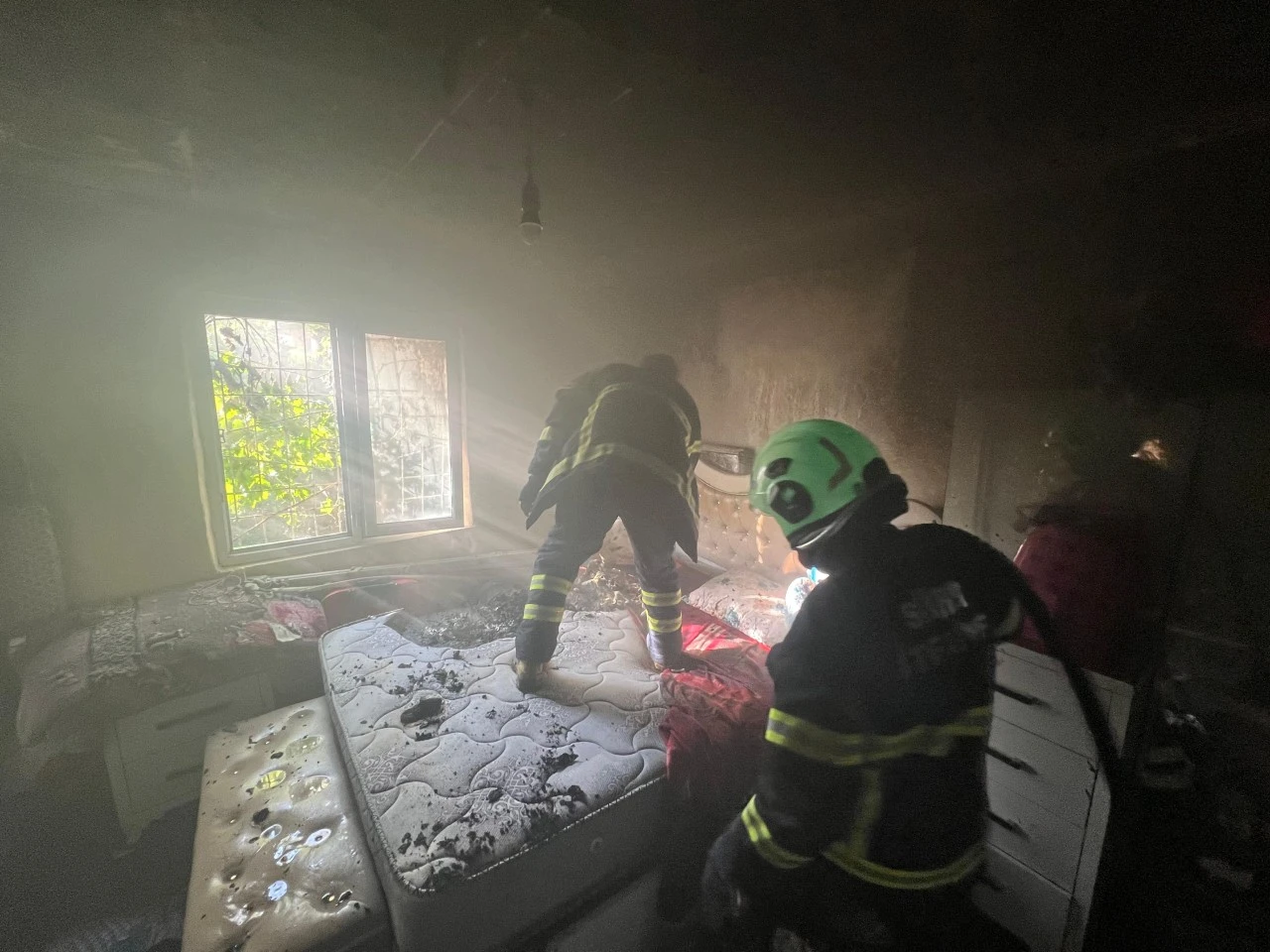 <div>Barış Mahallesi 1366. Sokak'ta iki katlı bir evin üst katında henüz belirlenemeyen nedenle yangın çıktı.</div> <div>İhbar üzerine bölgeye itfaiye ekipleri sevk edildi.</div> <div>Ekiplerin müdahalesiyle söndürülen yangında, evde hasar oluştu.</div> (AA)