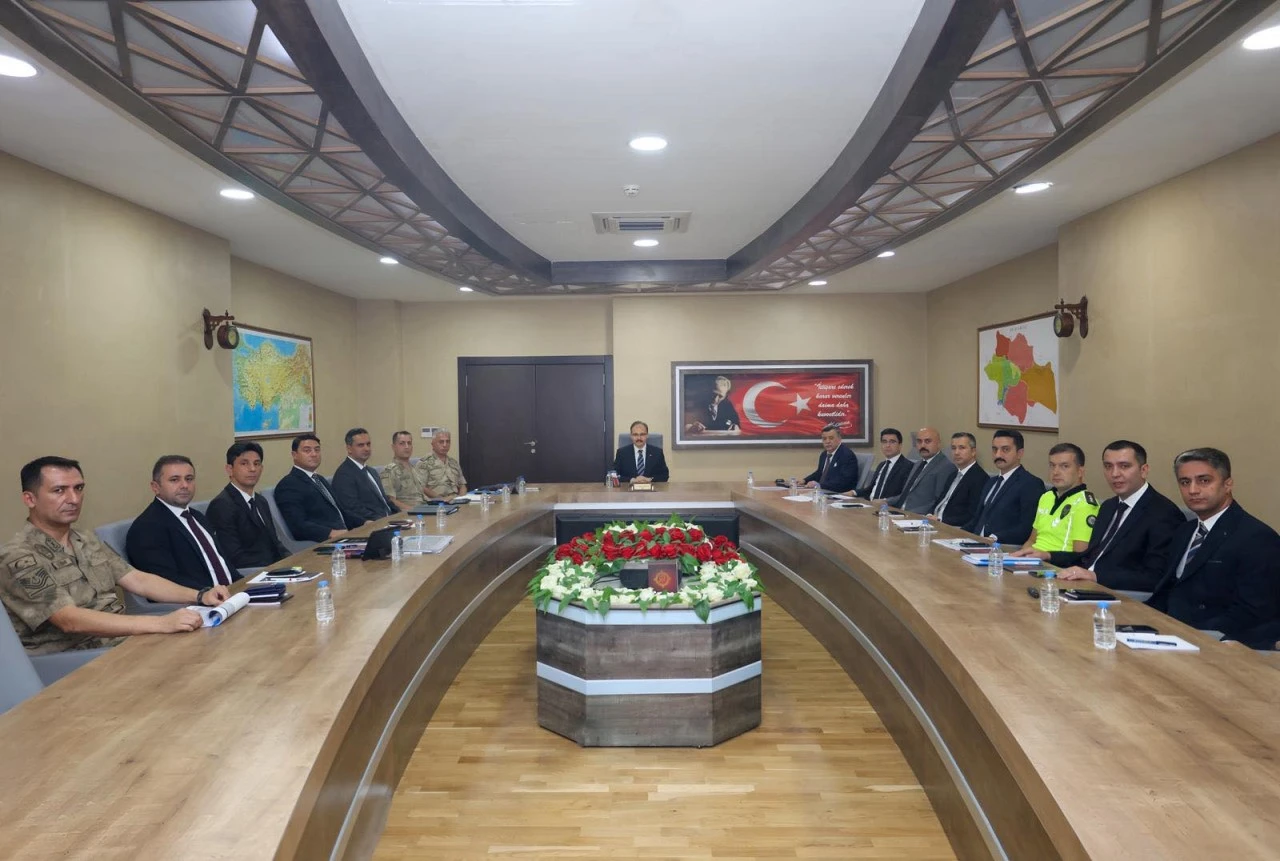 <div>Valilik toplantı salonunda yapılan görüşmelerde asayiş, terörle mücadele, mali ve organize suç örgütleriyle mücadele, uyuşturucu ile mücadele, düzensiz göç ve siber suçlar ele alındı. Ayrıca okul çevrelerinde güvenlik önlemleri, trafik tedbirleri, orman ve anız yangınları ile baraj ve göletlerde yaşanabilecek boğulma olaylarına karşı alınacak önlemler masaya yatırıldı.</div> <div>Siirt Valiliği’nden yapılan açıklamada, şehrin huzur ve güvenliği için ilgili birimlerin 7/24 kararlılıkla görev başında olduğu vurgulandı.</div> <div> </div> <div>(Haber Merkezi)</div>