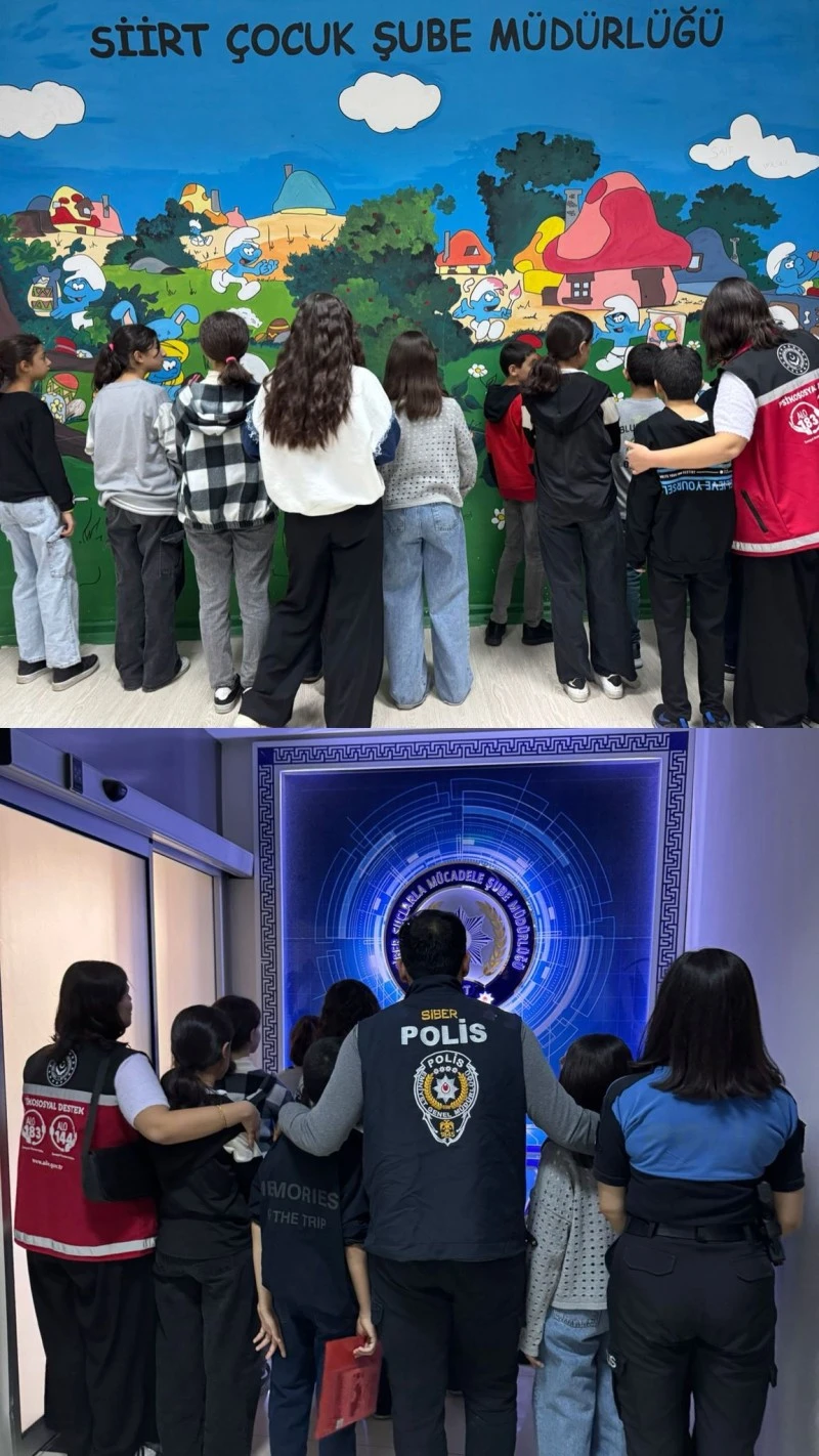 <div></div> <div>Gerçekleştirilen ziyaret kapsamında çocuklar, Çocuk Şube Müdürlüğü, Siber Suçlarla Mücadele Şube Müdürlüğü ve Olay Yeri İnceleme Şube Müdürlüğü birimlerini gezerek, emniyet teşkilatının çalışmaları hakkında bilgilendirildi.</div> <div>Etkinlik sırasında çocuklara polislik mesleği tanıtıldı, görev alanları ve sorumluluklar hakkında uygulamalı anlatımlar yapıldı. Öğretici ve eğlenceli geçen etkinlikte çocuklar hem yeni bilgiler edindi hem de unutulmaz bir gün yaşadı.</div> <div>Siirt Aile ve Sosyal Hizmetler İl Müdürlüğü, etkinliğe katkı sunan tüm emniyet mensuplarına teşekkür ederek, “Çocuklarımızın yüzündeki gülümseme, en büyük motivasyonumuz.” ifadelerini paylaştı.</div>