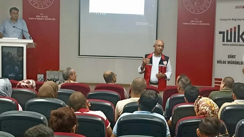 <div>Toplantıda konuşan Siirt Tarım ve Orman İl Müdürü Mustafa Şanverdi, genel tarım sayımının bölgenin tarımsal potansiyelini bilimsel temelde ortaya koymak açısından büyük önem taşıdığını belirtti. Şanverdi, “Genel tarım sayımı, geleceğe dönük tarım politikalarının şekillendirilmesinde bizlere rehber olacak. Toplanacak verilerin titizlikle kaydedilmesi, üretim planlarımızı daha etkin ve doğru yapmamıza katkı sunacaktır” dedi. </div> <div>Tarım ve Orman Bakanlığı ile TÜİK iş birliğinde yürütülecek çalışmanın ülke tarımı açısından önemli sonuçlar doğuracağını vurgulayan Şanverdi, Siirt genelinde sayım çalışmalarının en doğru şekilde yapılması için İl Müdürlüğü olarak gerekli tüm hazırlıkları yaptıklarını ve sahada görev alacak personelle koordineli bir şekilde çalışacaklarını ifade etti.</div> <div>Toplantı sonunda, görev alacak personellere sayımın yöntemleri ve dikkat edilmesi gereken hususlar hakkında detaylı bilgi verildi. Genel tarım sayımı sürecinin önümüzdeki haftalarda sahada fiilen başlaması bekleniyor.</div> <div> </div> <div>(Haber Merkezi)</div>