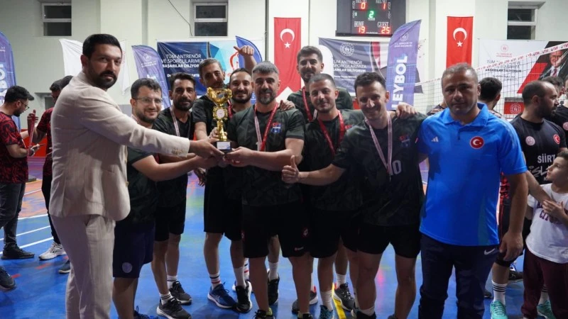 <div></div> <div>Kıyasıya geçen mücadelede kazanan taraf İl Milli Eğitim Müdürlüğü oldu. Böylece İl Milli Eğitim Müdürlüğü turnuvayı birincilikle tamamlarken, Gençlik ve Spor İl Müdürlüğü ikinci, İl Jandarma Komutanlığı ise üçüncü sırada yer aldı.</div> <div>Siirt Gençlik ve Spor İl Müdürlüğü tarafından organize edilen Kamu Spor Oyunları, kamu kurumları arasında dostluk, dayanışma ve spora olan ilgiyi artırmayı amaçlıyor. Turnuvaya katılan takımlar gösterdikleri mücadeleyle alkış topladı.</div> <div>Finalin ardından dereceye giren takımlara ödülleri takdim edilirken, Gençlik ve Spor İl Müdürlüğü yetkilileri tüm katılımcılara teşekkür etti.</div>